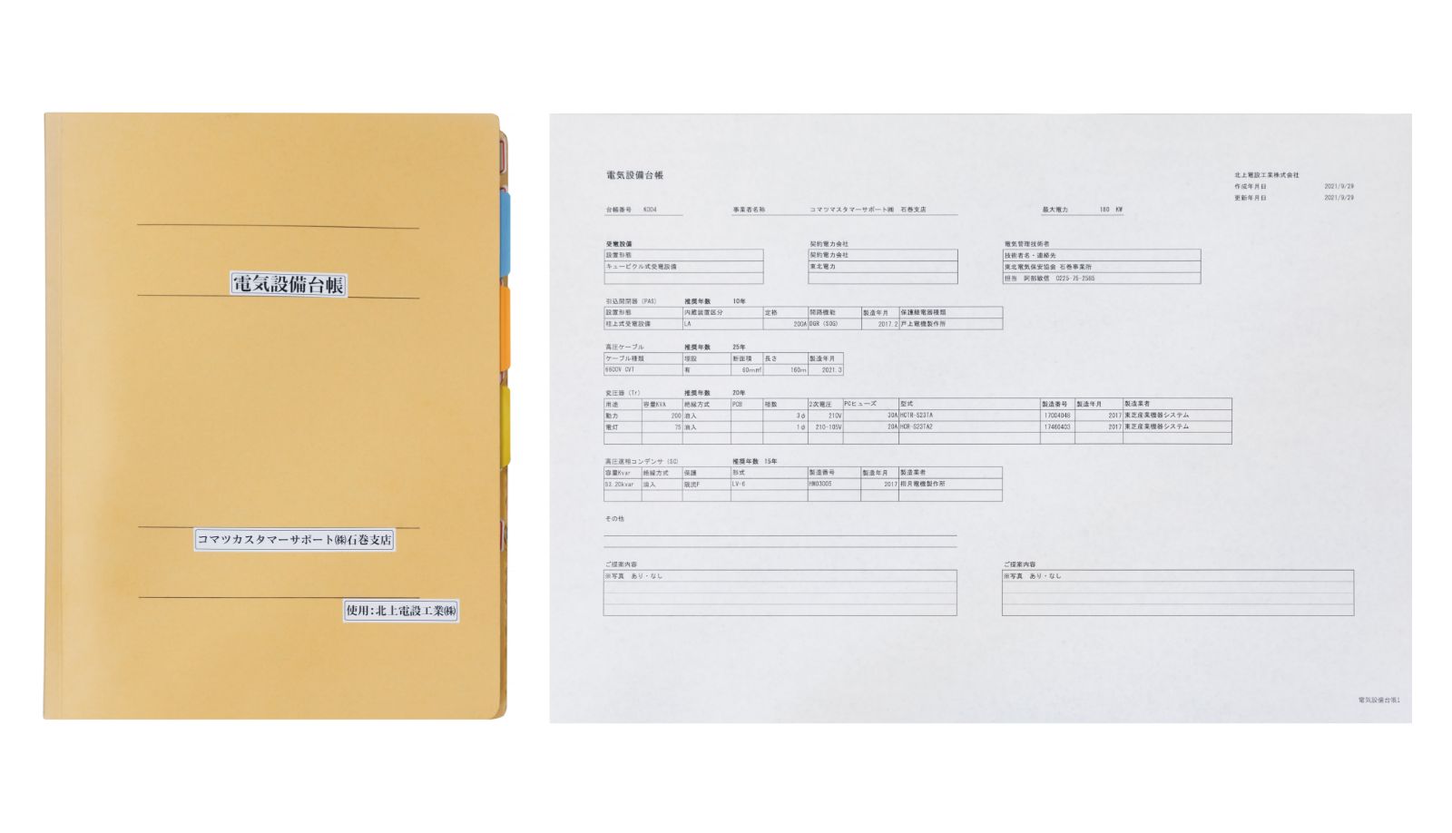一つは、お客様側のご担当者様が変わっても、電気設備の状態を引き継げること、もう一つは、弊社の担当者が変わっても、お客様の電気設備の状態がわかること。