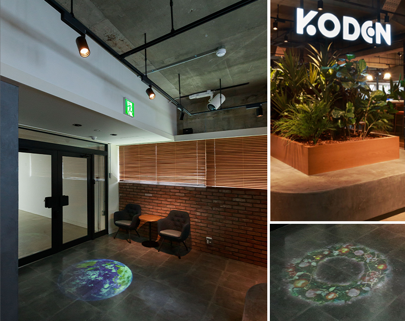 エントランスはスペースプレーヤーで床面に映像を照射し、お客様をお出迎え。
