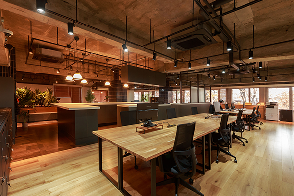 執務スペースはフリーアドレスとなっており、シンクロ調色LEDスポットライトの調光調色タイプをご採用。