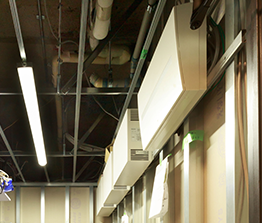 コンサートなどのイベントを開催するフリースペースにはシンクロ調色LEDスポットライトの調光調色タイプをご採用。
