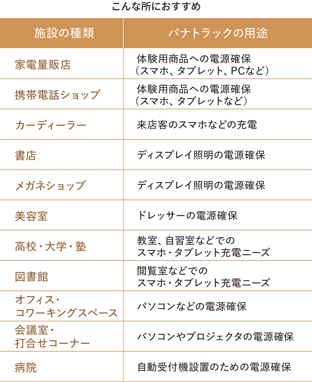 配線モールを使わずに設置が可能なので、床に凸凹のない、美しく安全な店舗やオフィス環境を実現します。