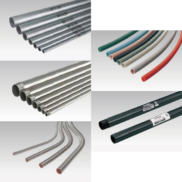 可とう電線管、1種金属可とう電線管、2種金属製可とう電線管、合成樹脂製電線管、合成樹脂製可とう電線管、薄鋼電線管、厚鋼電線管、アルミニウム電線管、プラスチック製電線管、ねじなし電線管、硬質ポリ塩化ビニル電線管等が代表的。