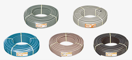 ・二重管:波型のポリエチレン管の外面を難燃性(自己消化性)がある塩化ビニルで覆ったもの。