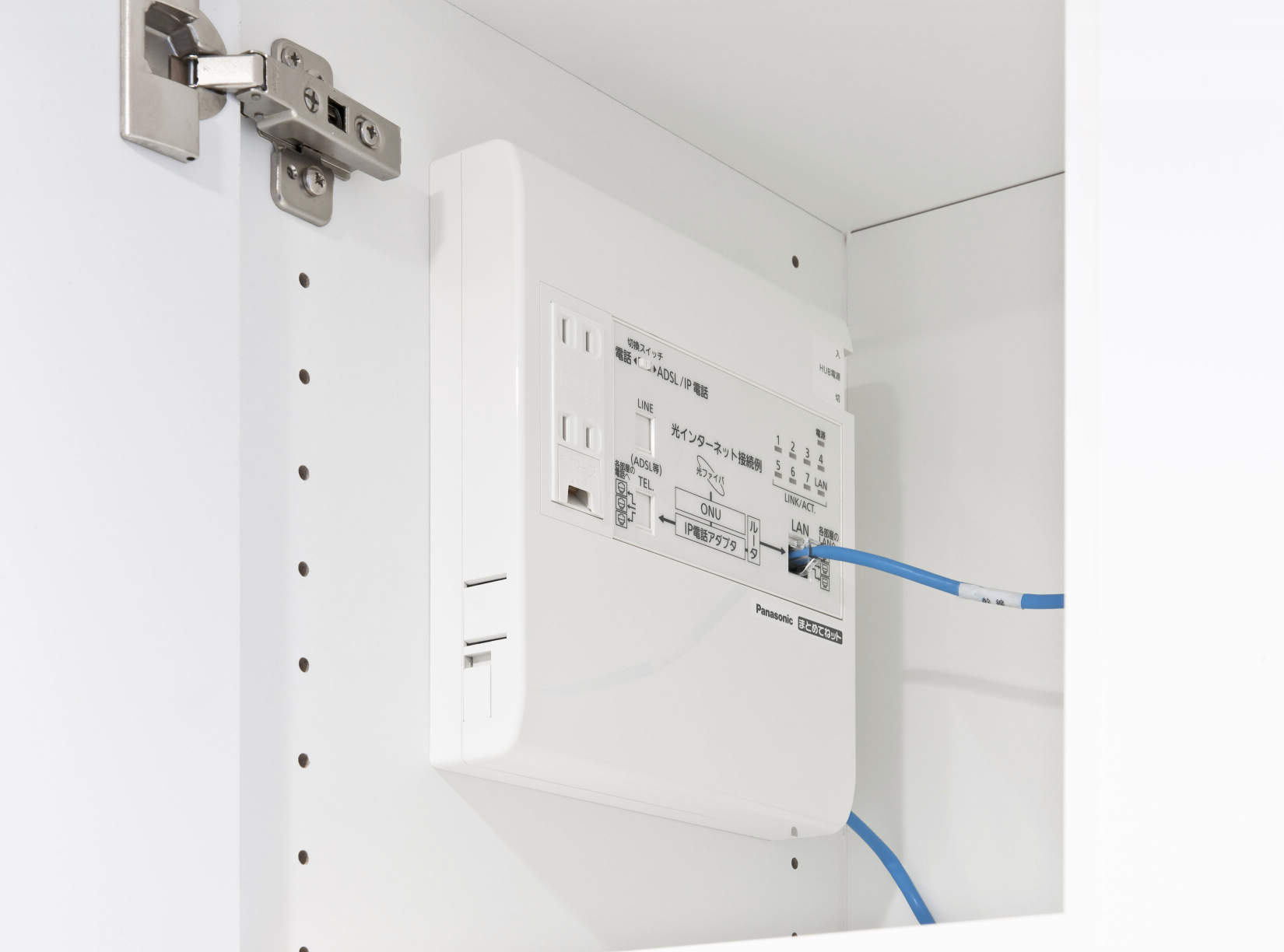 「まとめてネット」でインターネット(宅内LAN)配線と電話設備を美しくコンパクトにまとめました。