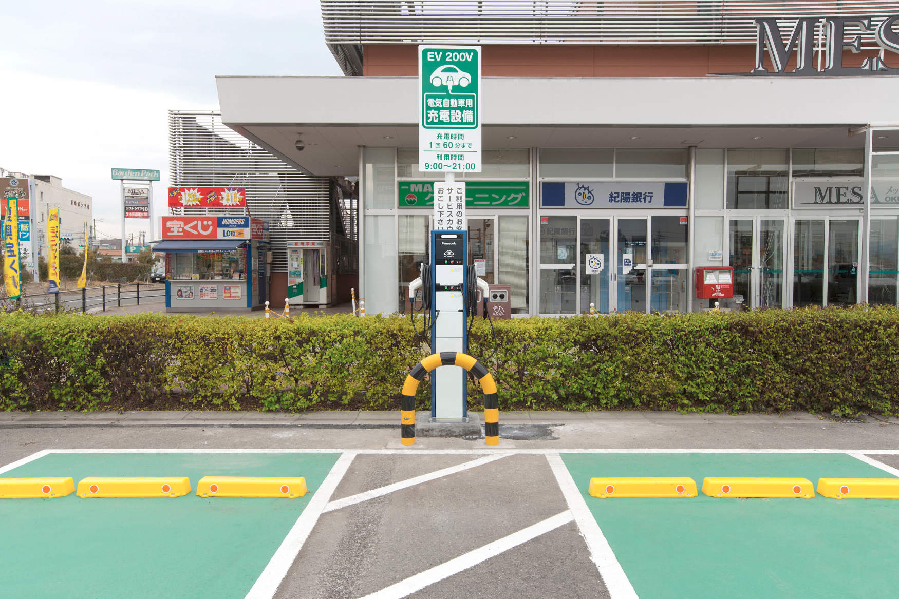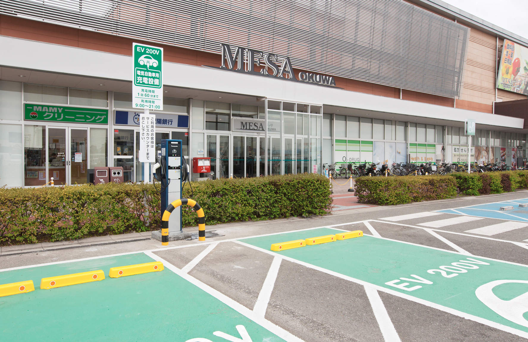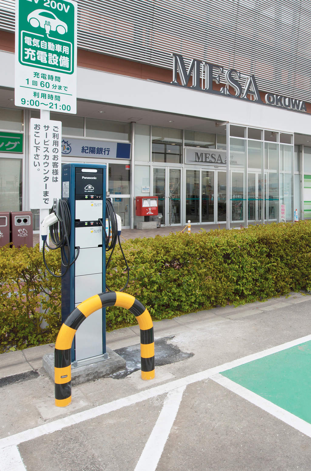 店舗正面に設置された電気自動車充電スタンド「ELSEEV(エルシーヴ)」は環境への取り組みのPRにも役立っています。