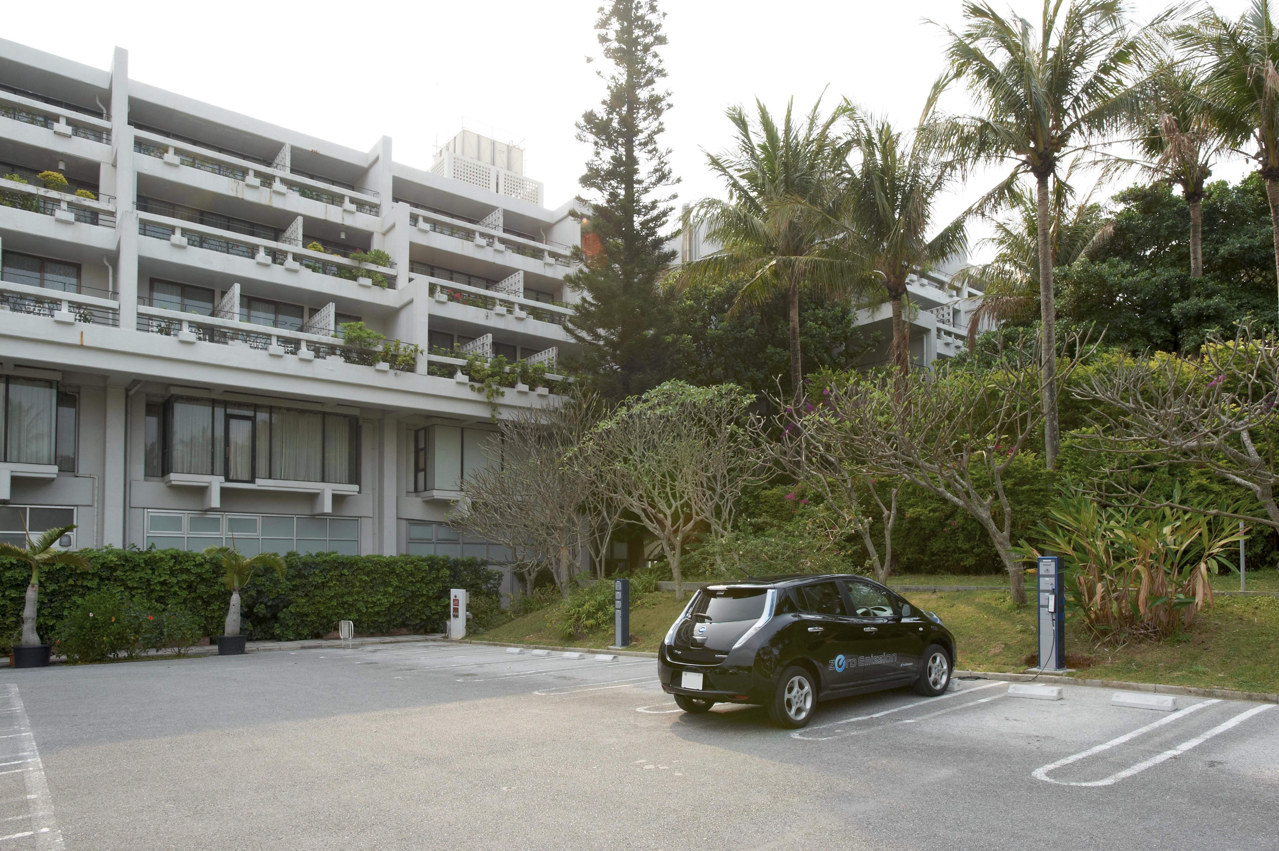 環境保全を通して沖縄観光の新たなブランド構築を目指し、EVを導入すると同時に、本島内各地の宿泊・観光施設に充電スタンドを整備するものです。「ホテルムーンビーチ」でも電気自動車充電スタンド「ELSEEV(エルシーヴ)」をご採用いただきました。 - 採用商品