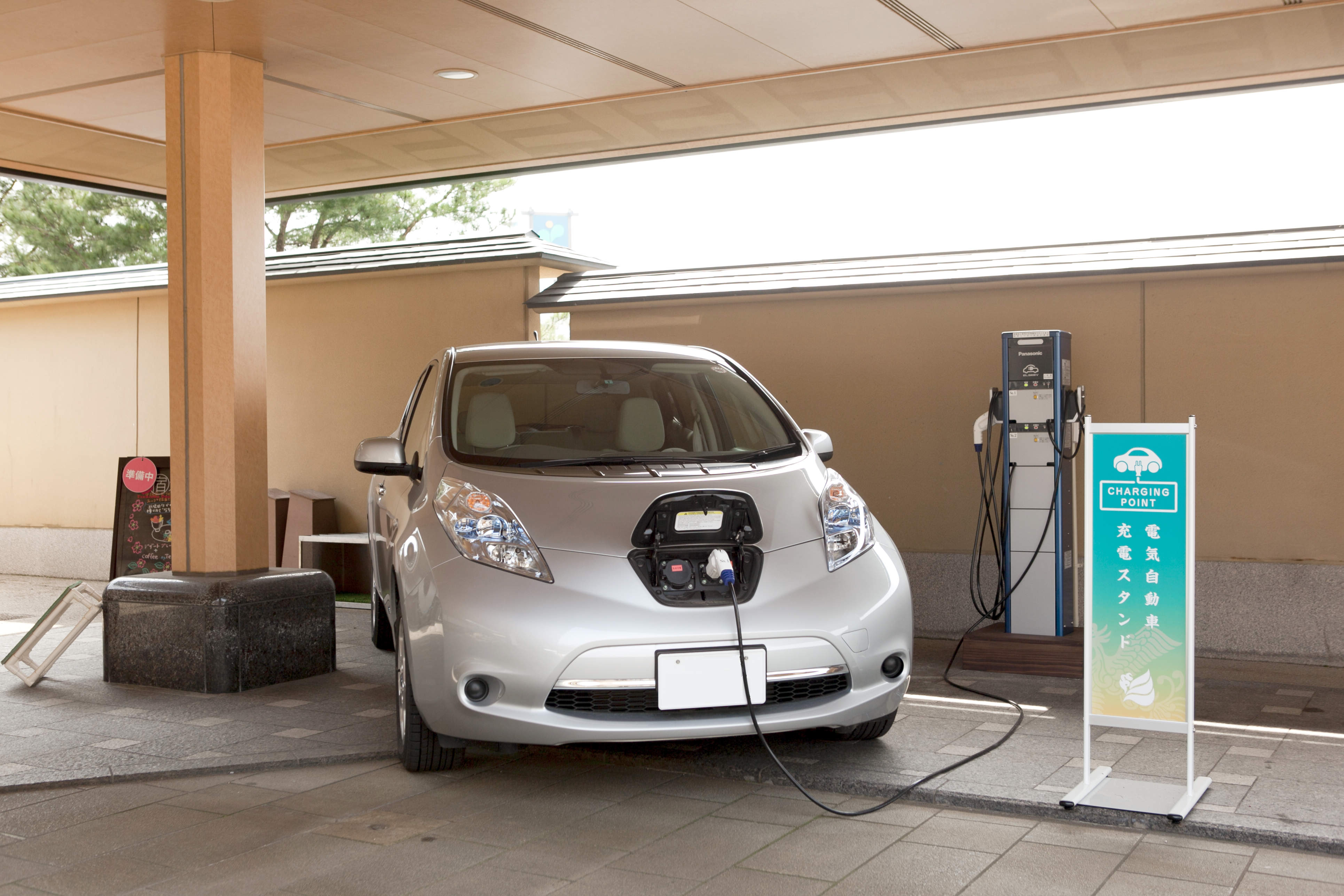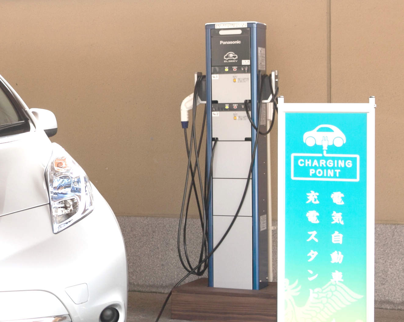 - 6000坪の庭園を誇る新潟は月岡温泉の「白玉の湯 華鳳」様では、電気自動車、プラグインハイブリッド車でご来館のお客様に配慮し、電気自動車充電スタンドを設置されました。