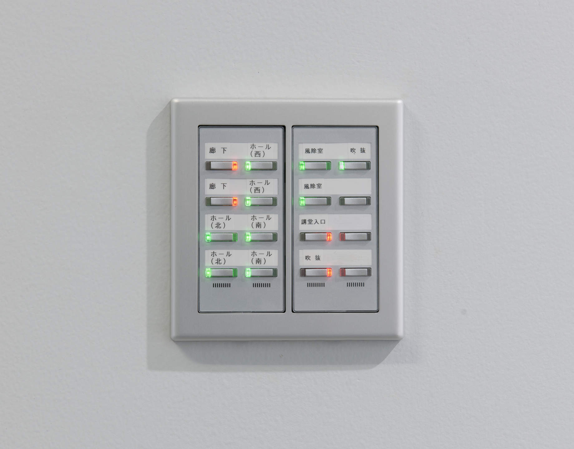 2連プレートのサイズに16個のスイッチが収まるため、設置スペースをコンパクトにできました。