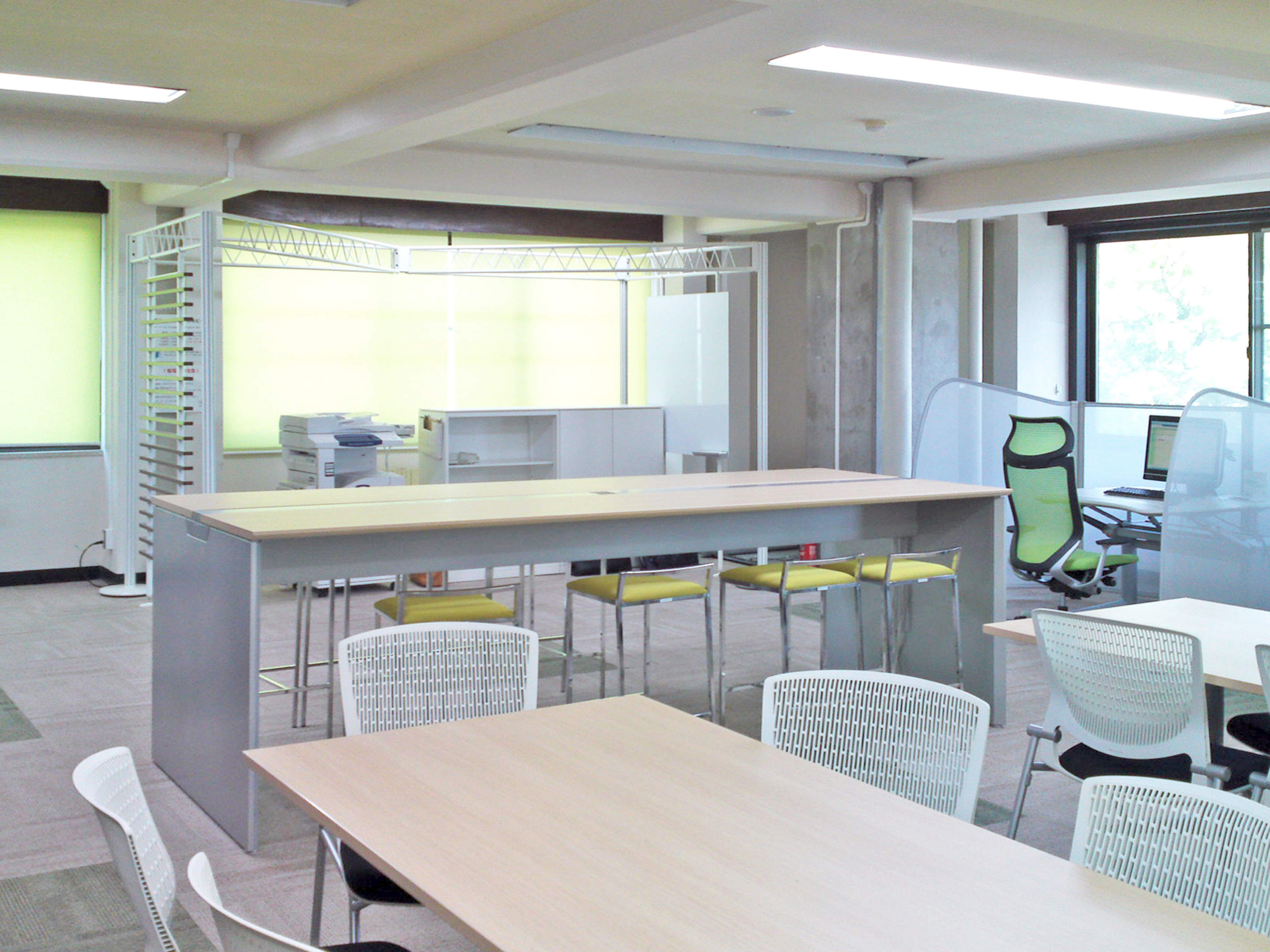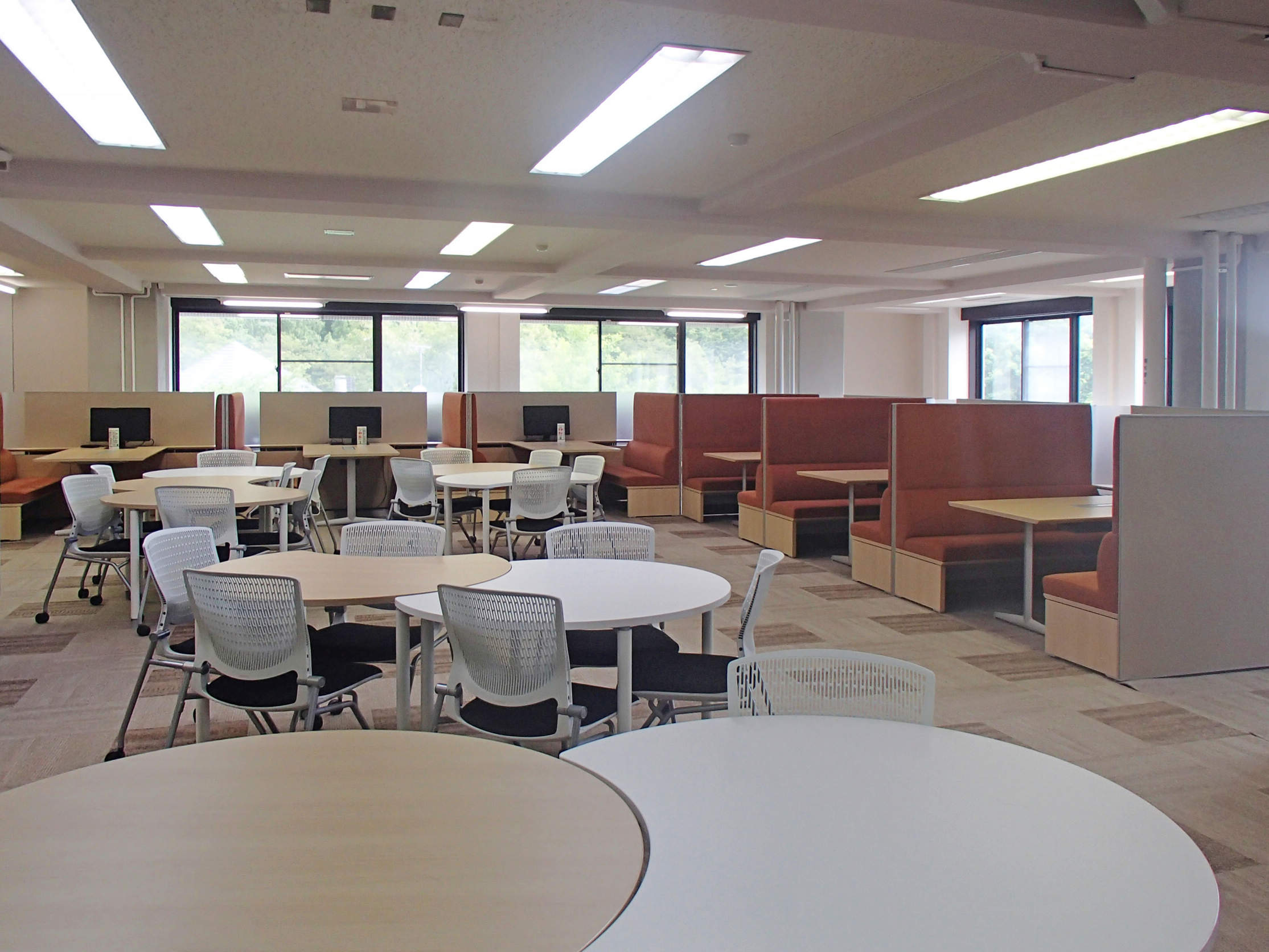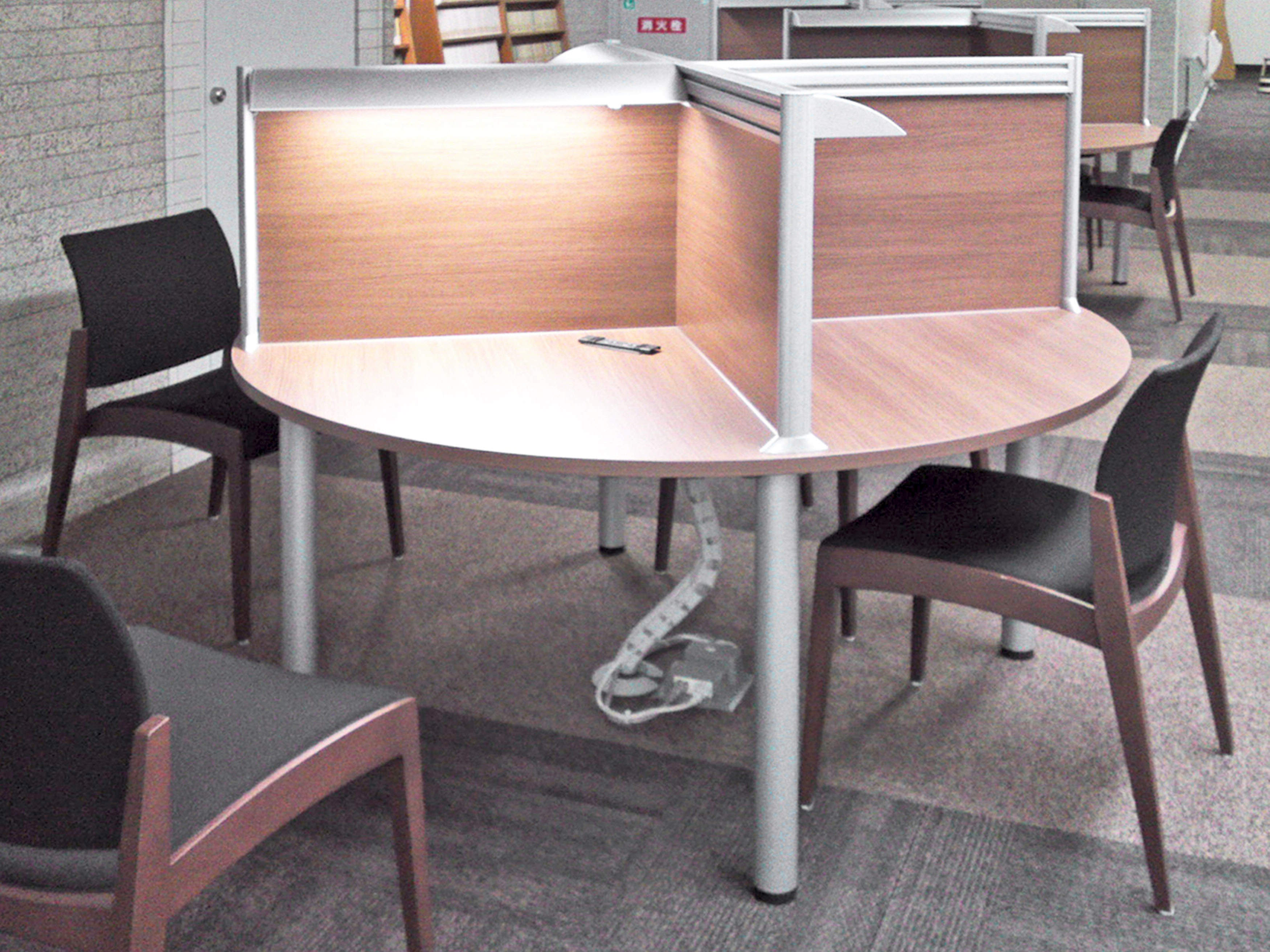 グループ学習での活発な議論や研究発表、市民向けのセミナー等の文化活動ができるよう、複数人が着席できるテーブルを配置し、プロジェクターやパソコンなどの電源をテーブルごとに完備する必要がありました。