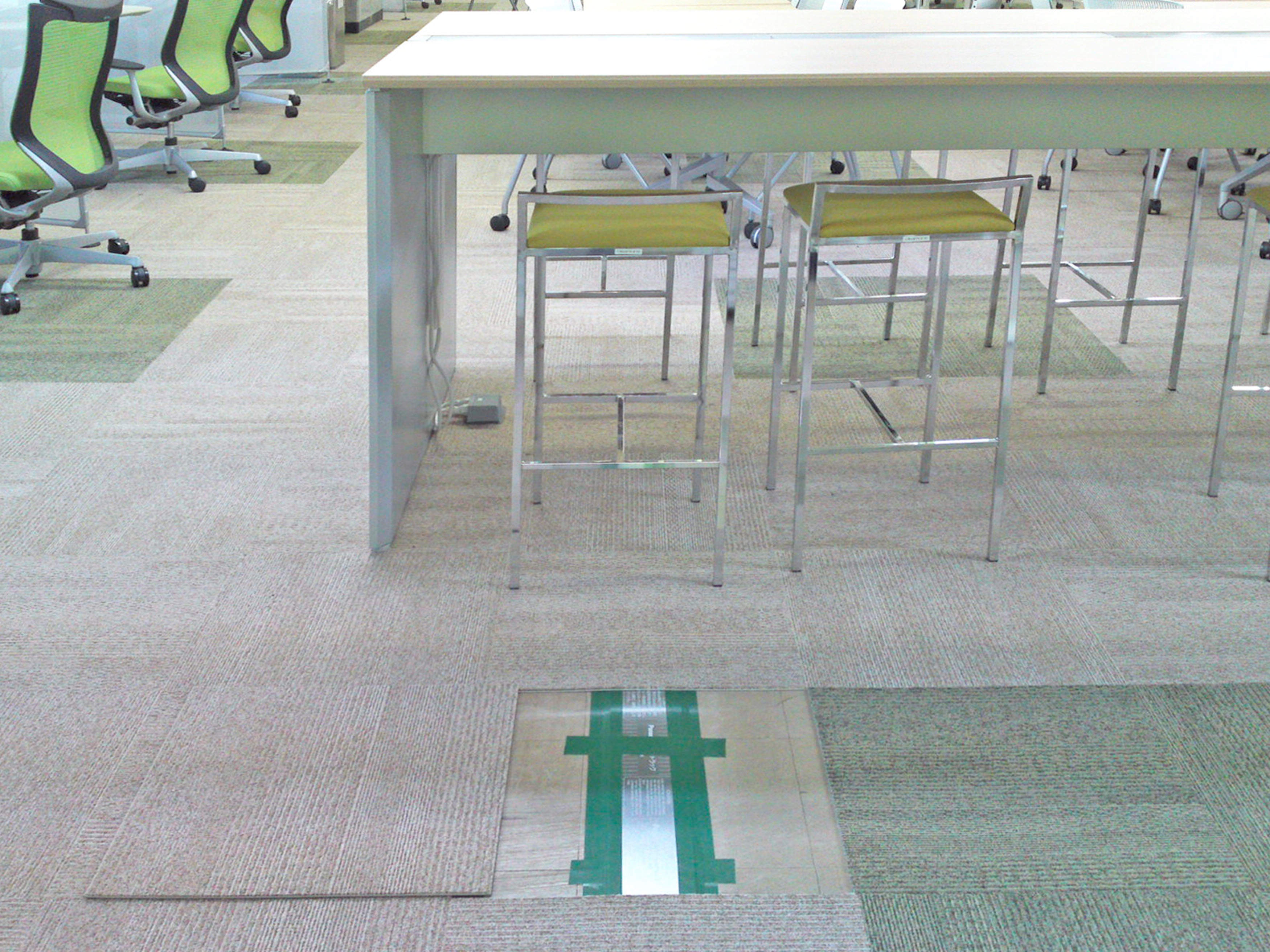 配線の必要なエリアが広いためOAフロアも検討されましたが、コストを抑えることができるアンダーカーペット配線システム「パナトラック」をご採用いただきました。
