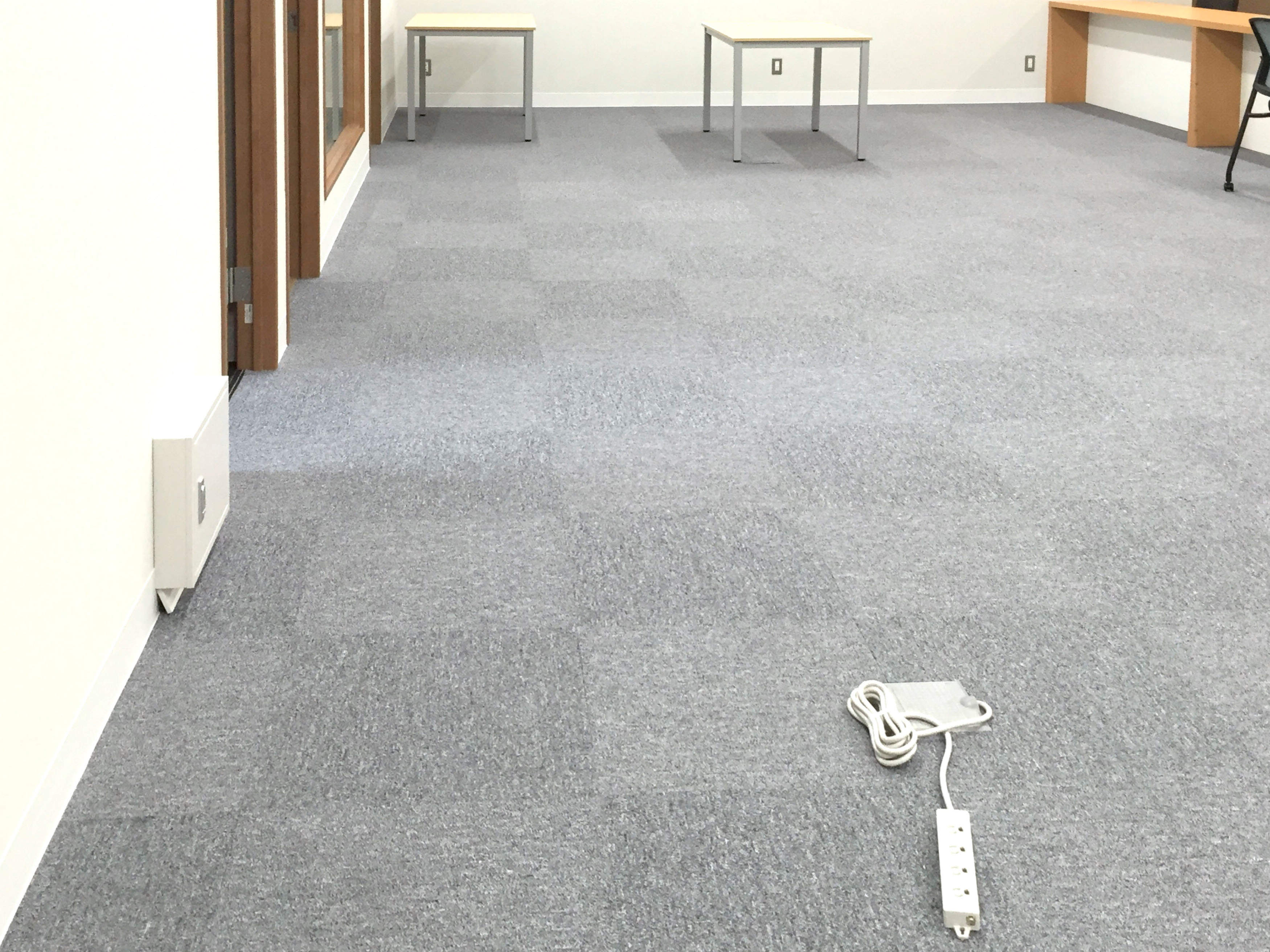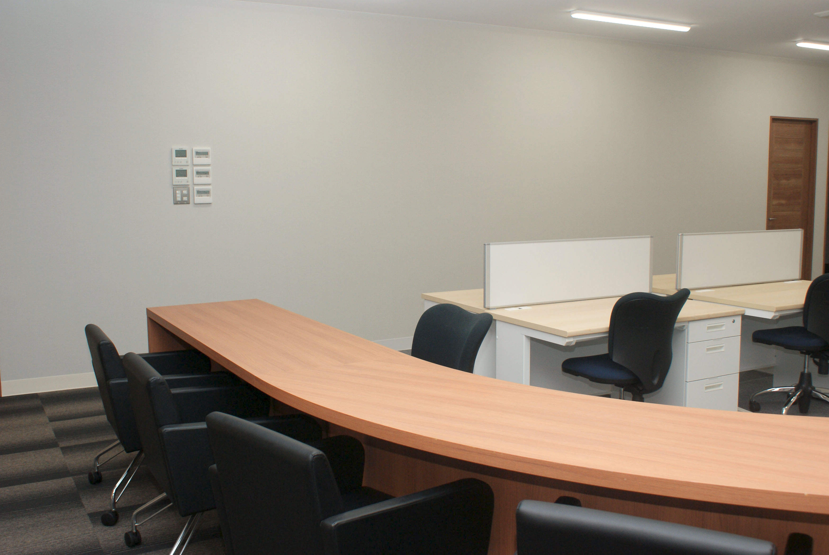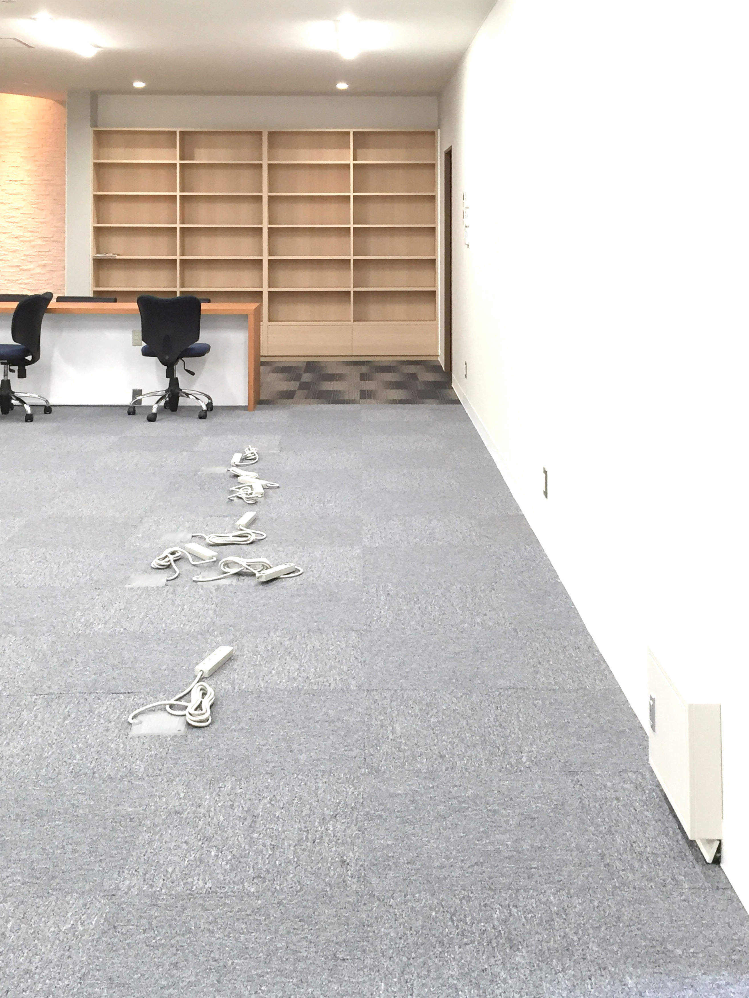 新しい教室では、受付カウンターと15席の職員室を兼ねたスペースで、パソコンや電話等を使うための電気配線が必要です。