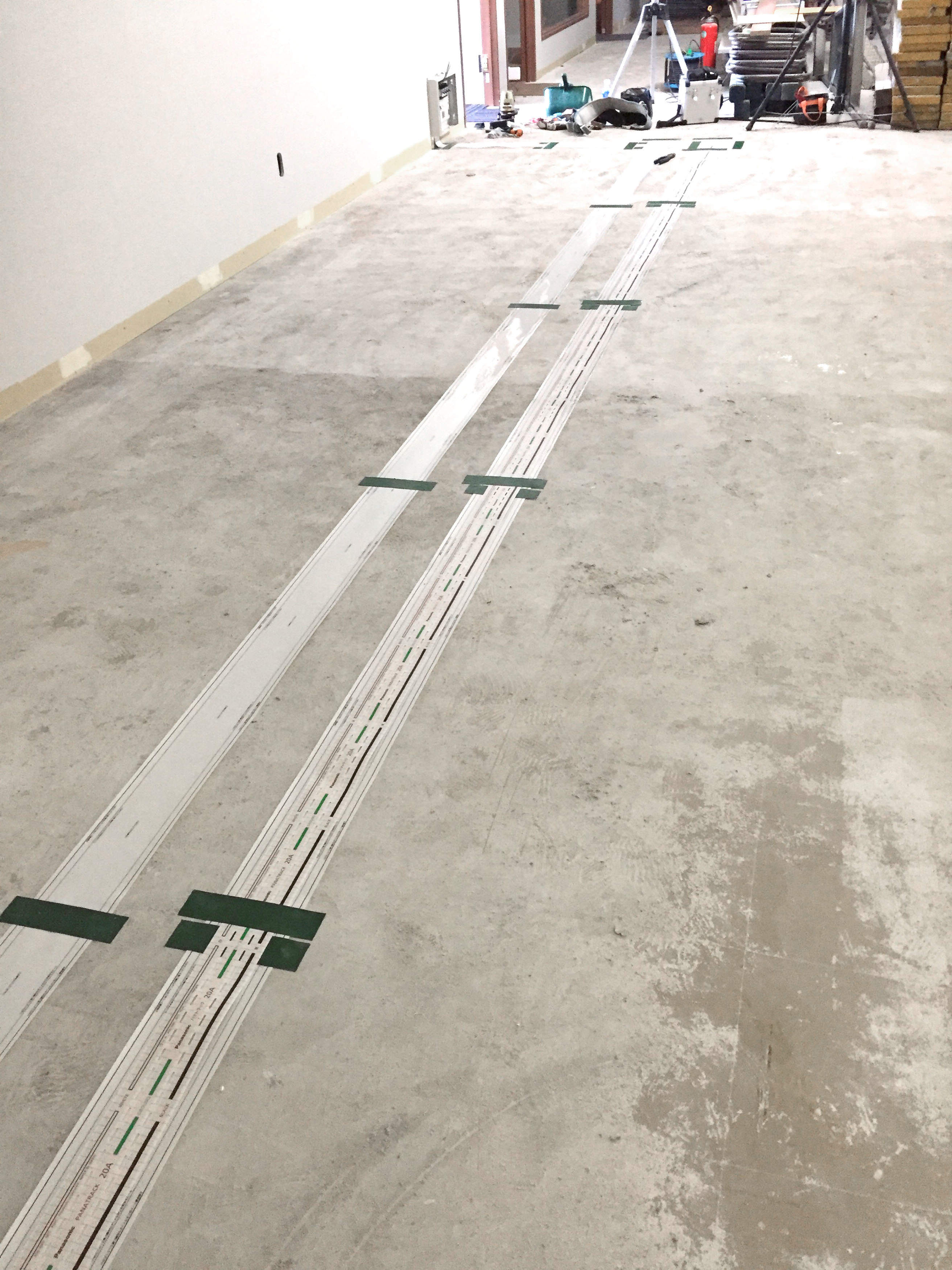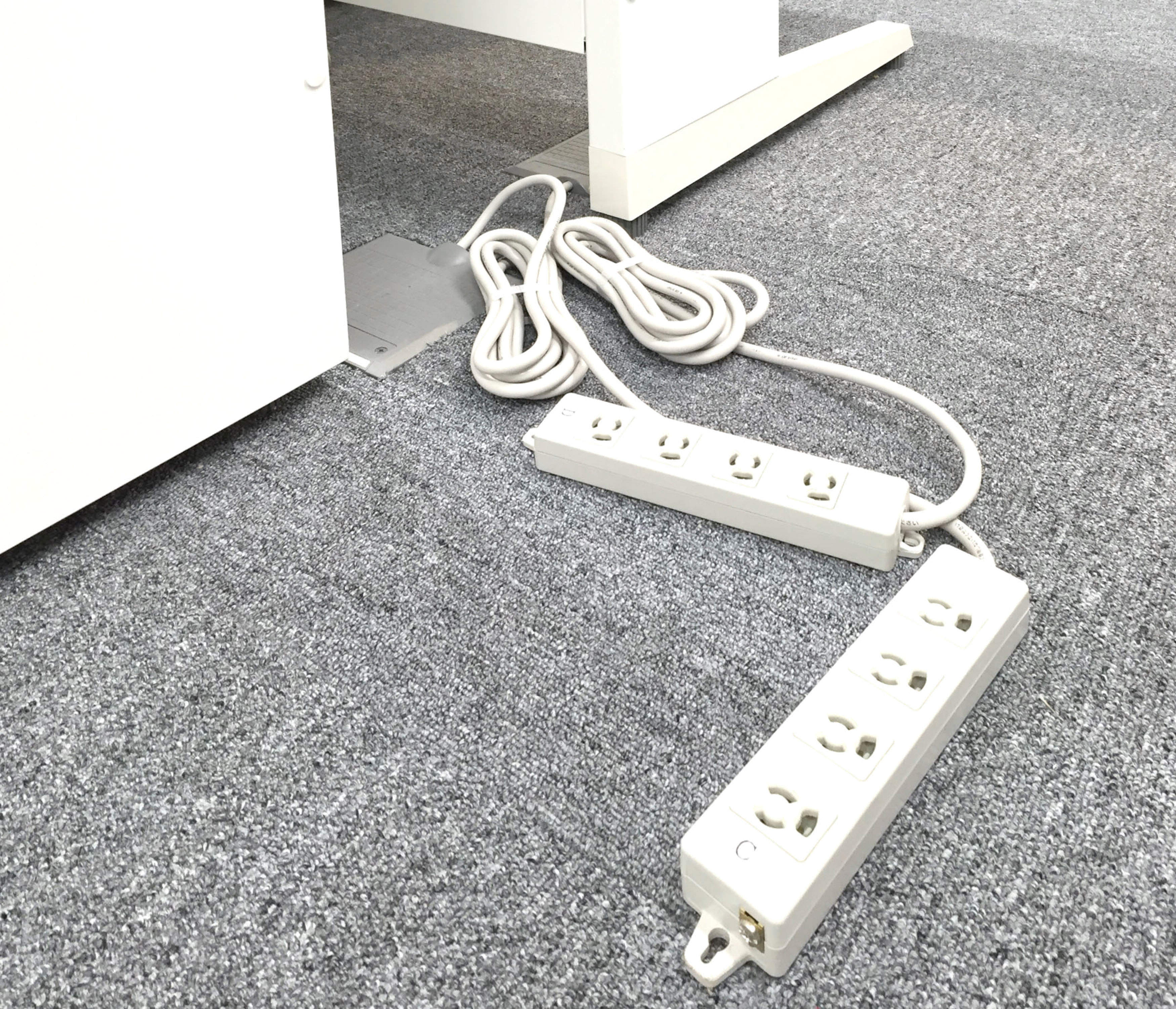 ケーブル変換用ボックス(写真左中)より奥側は床配線は不要なエリアですが、段差もなく一体的な空間を実現しています。