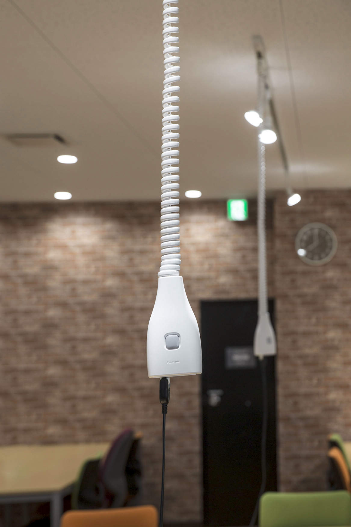 商談打ち合わせやイベント・勉強会などに使われるワークプレイスに、天井から電源が取れる「リーラーコンセント」を採用されました。