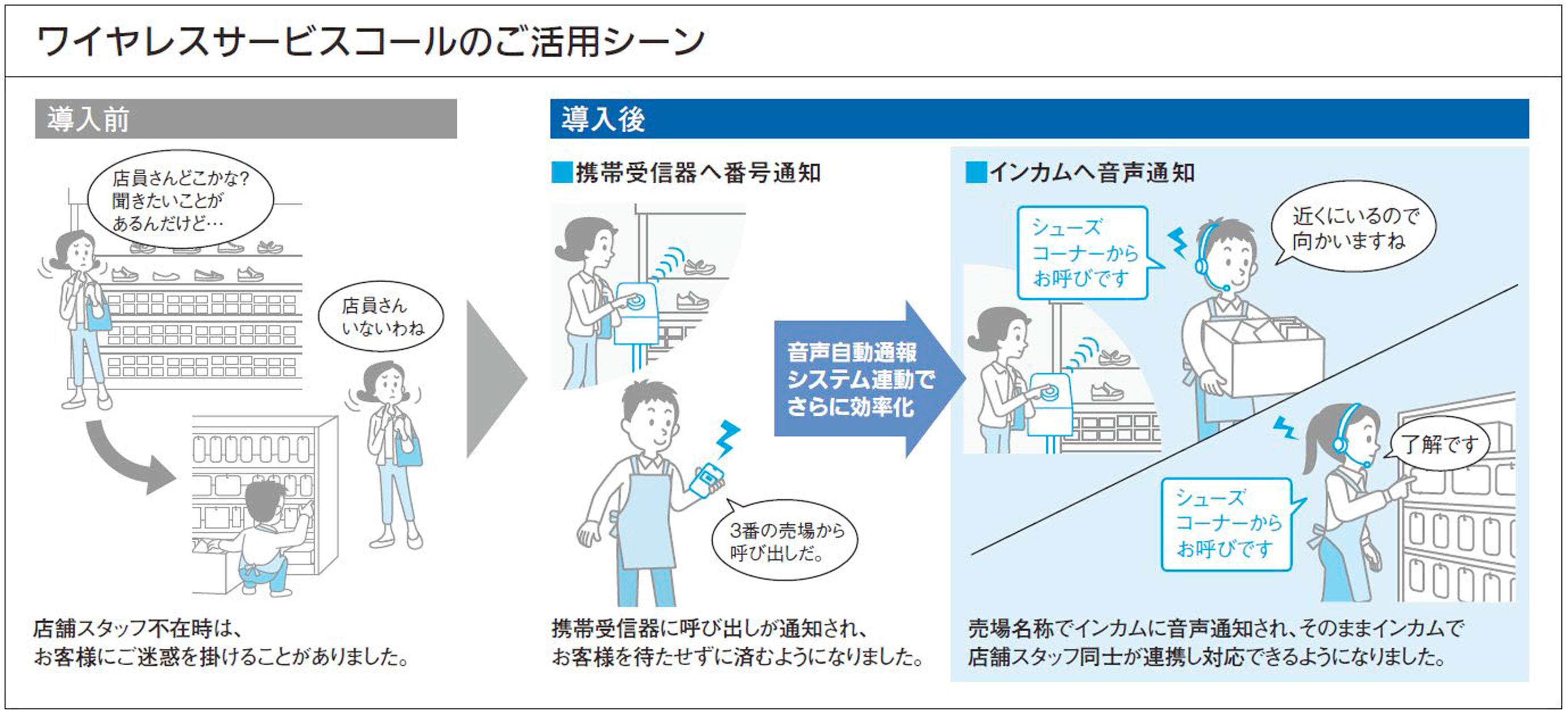 売り場にスタッフ不在時の接客の機会損失解消のために、「ワイヤレスサービスコール」を導入されました。