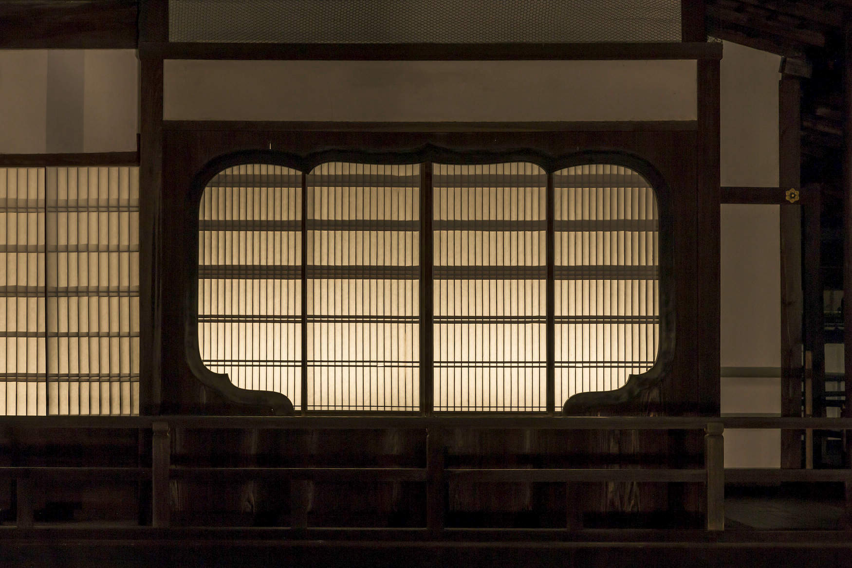 建物ライトアップと、障子ごしにあかりがゆらめく演出をしています。