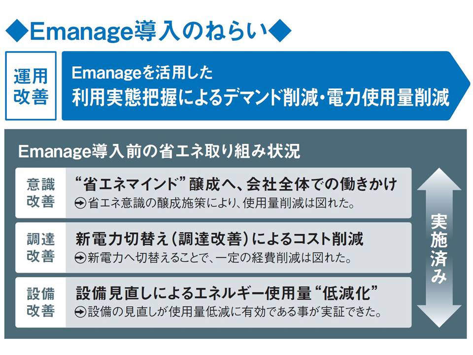 【Emanage(エマネージ)を活用した運用改善によるレベルアップ・実証を計画】
