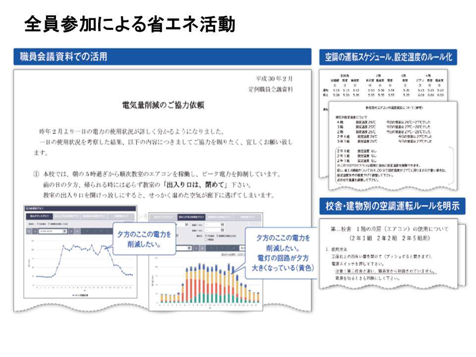 使い方の異なる学校施設ごとの電力“見える化”を通して、高デマンド要因を特定し、対策を立案。