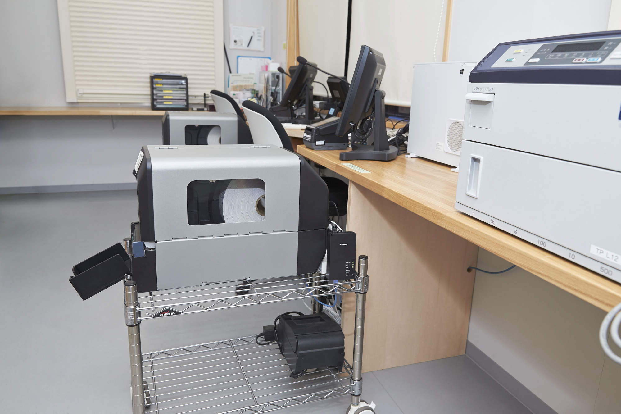 延長タップは画面中央の発券機の奥側、親器は発券機の背側(画面では発券機の右下)に設置しています。