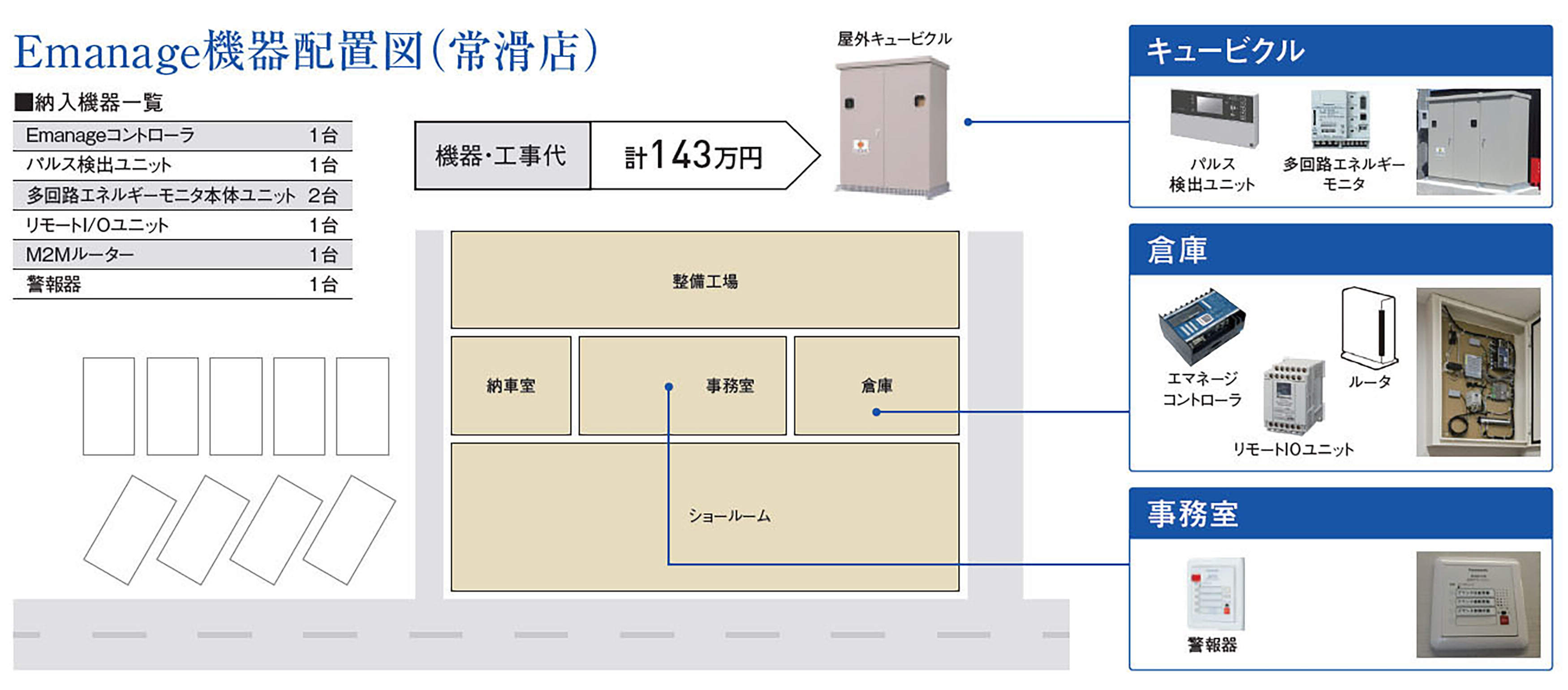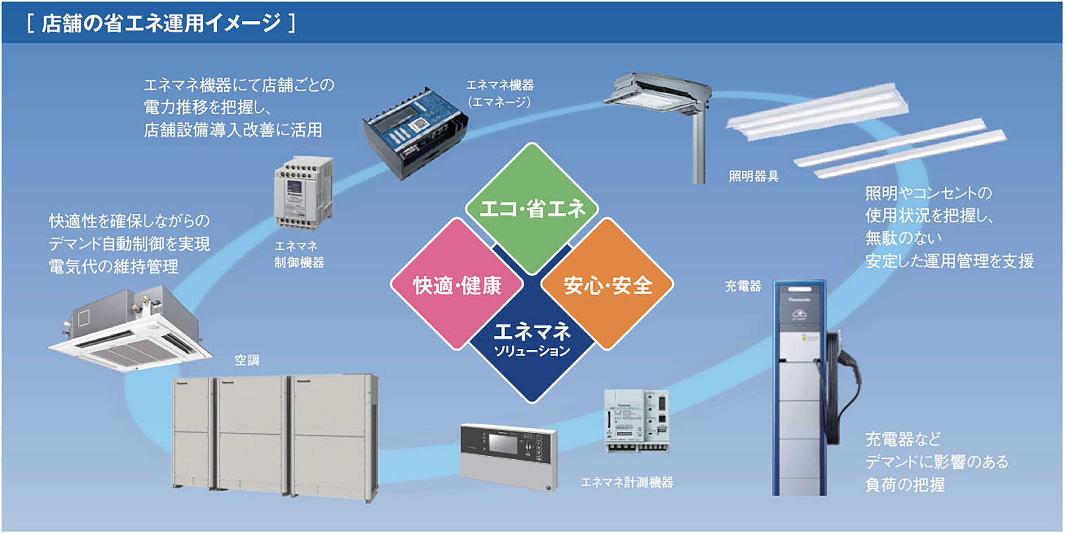 今回は、新築店舗(常滑店)への省エネ設備の導入に加えて、店舗の さらなる省エネ運用を図るため、エネルギーマネジメントシステム 「Emanage(エマネージ)」を採用されました。 - 採用商品