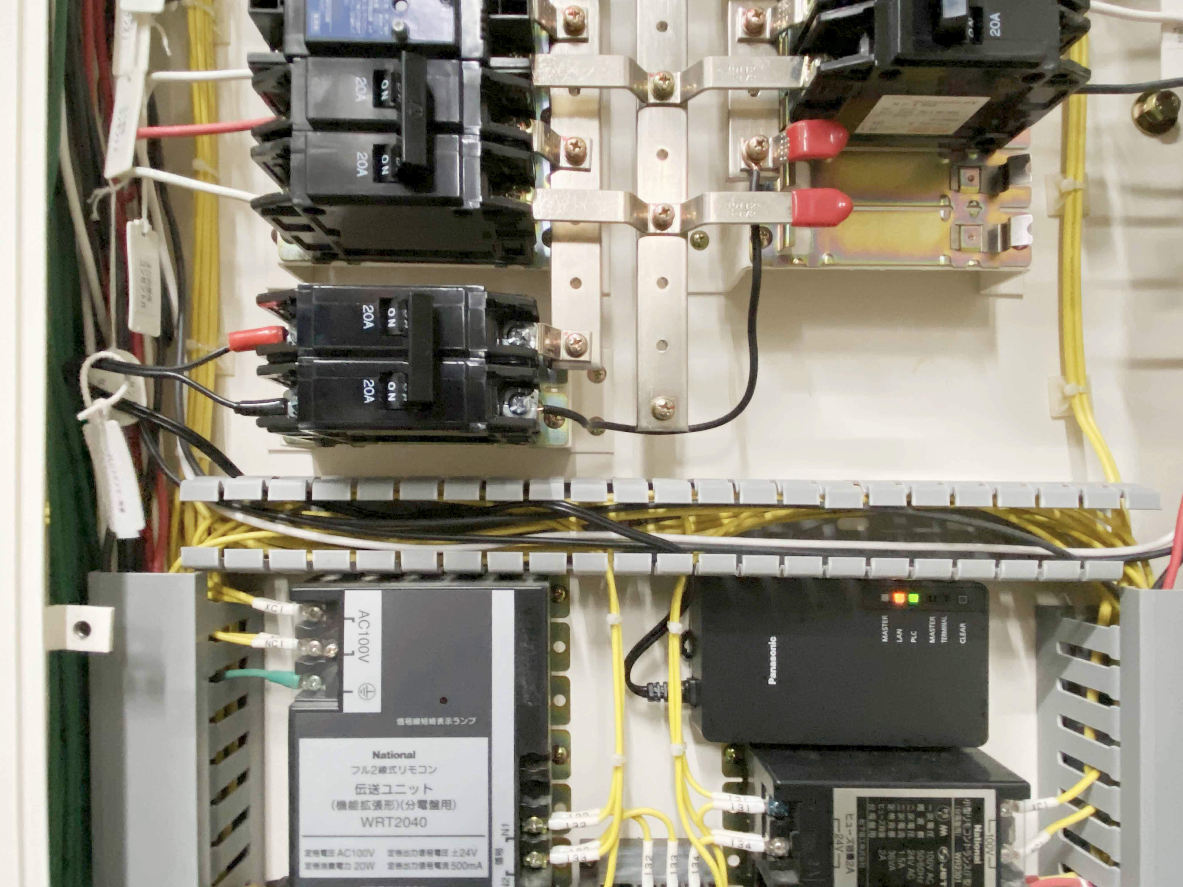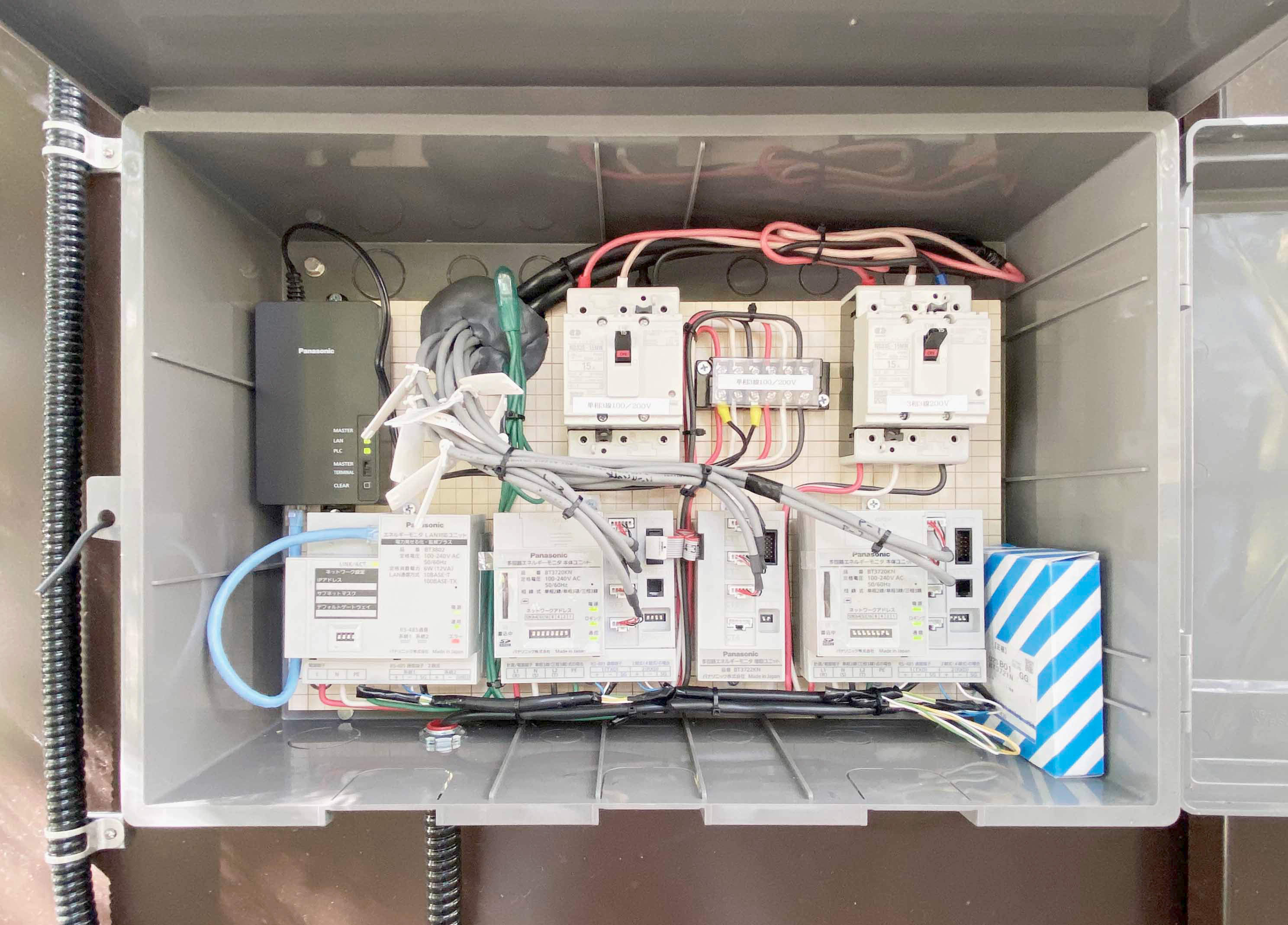 ボックス内には下側に多回路エネルギーモニタとLAN対応ユニットを取り付けています。