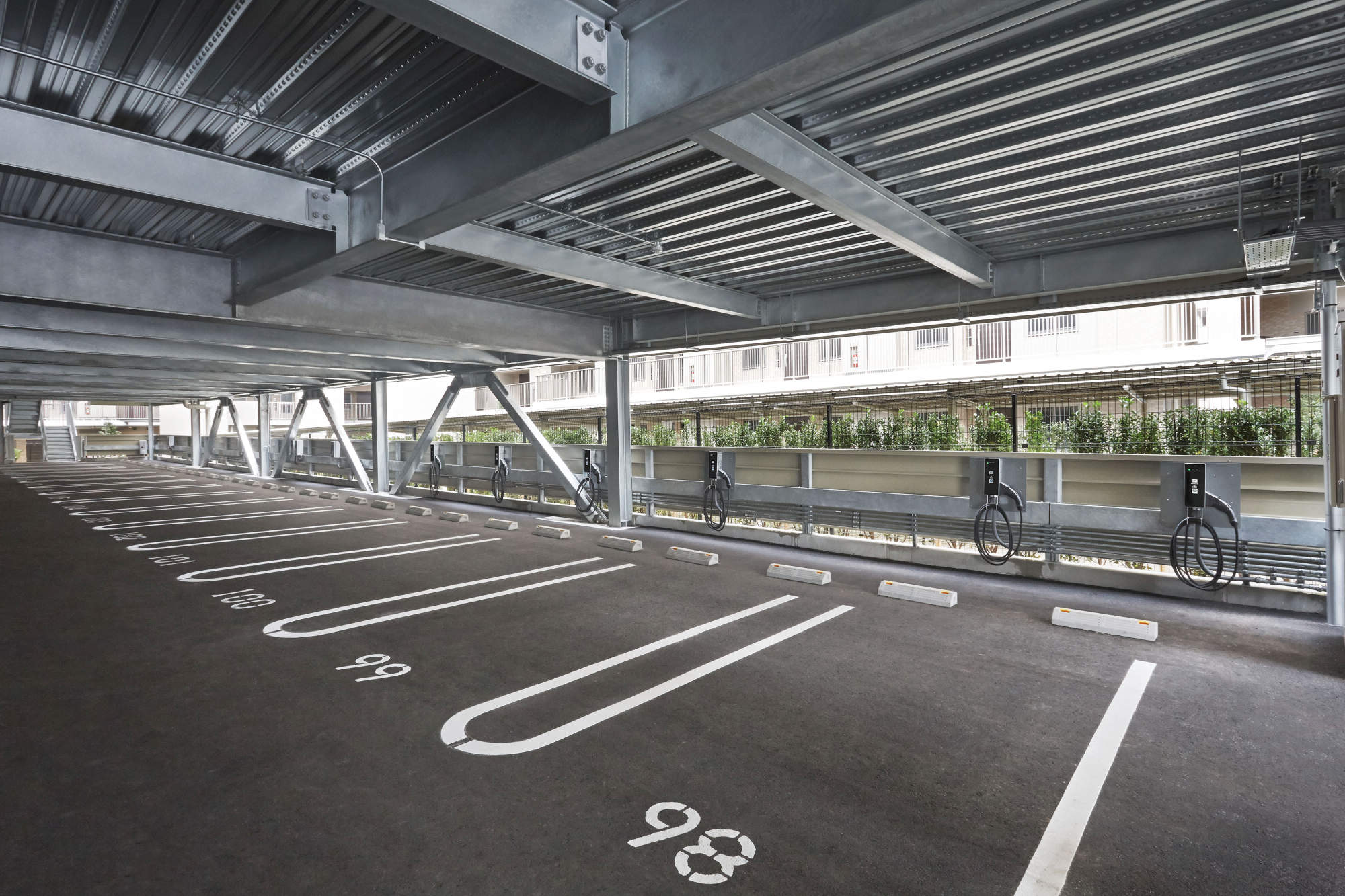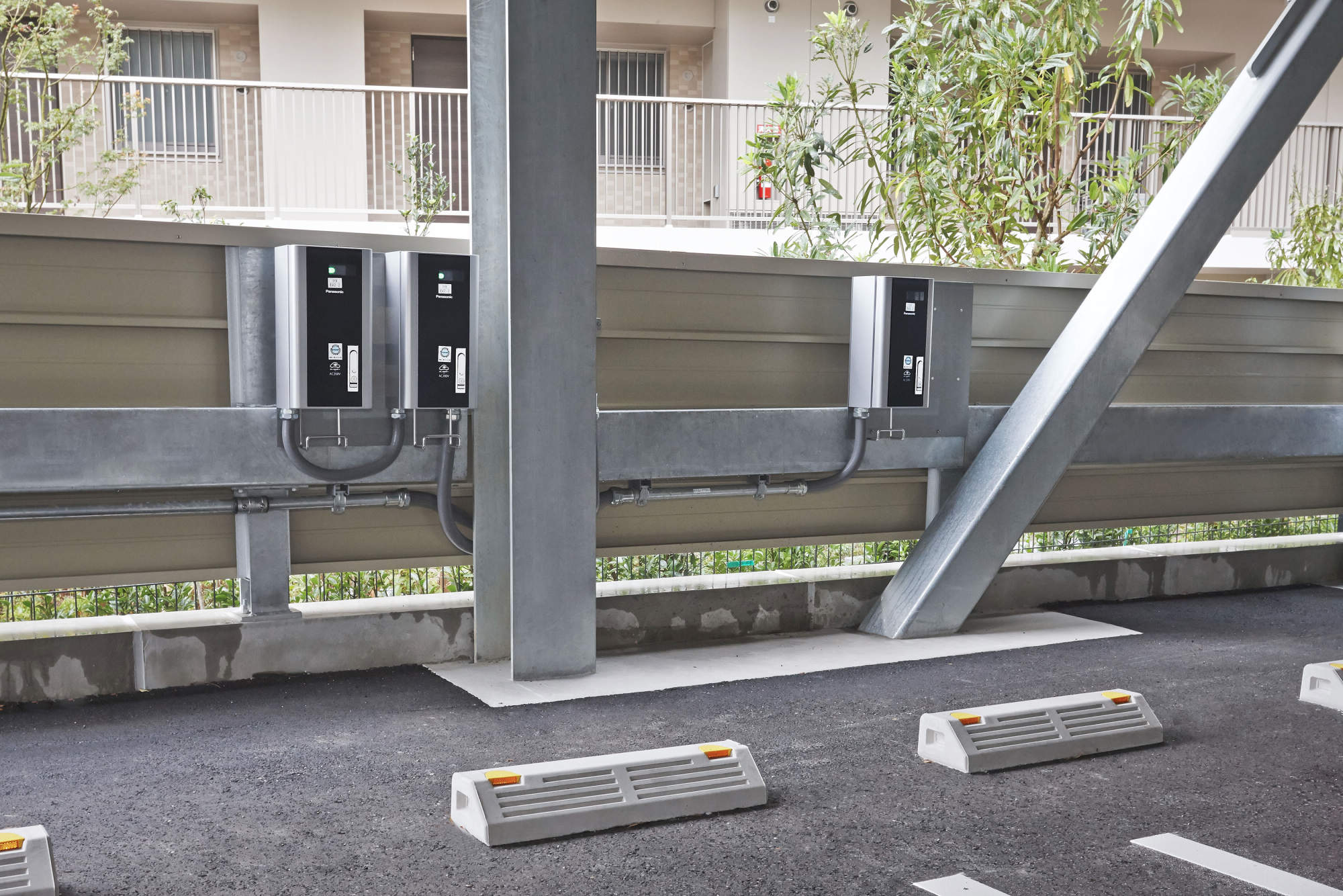 この入居者様用立体駐車場に当社製EV・PHEV充電用充電器をご採用いただきました。