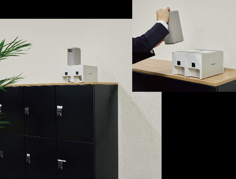 の上に設置して、充電専用のエリアを確保されました。帰宅前ロッカーに