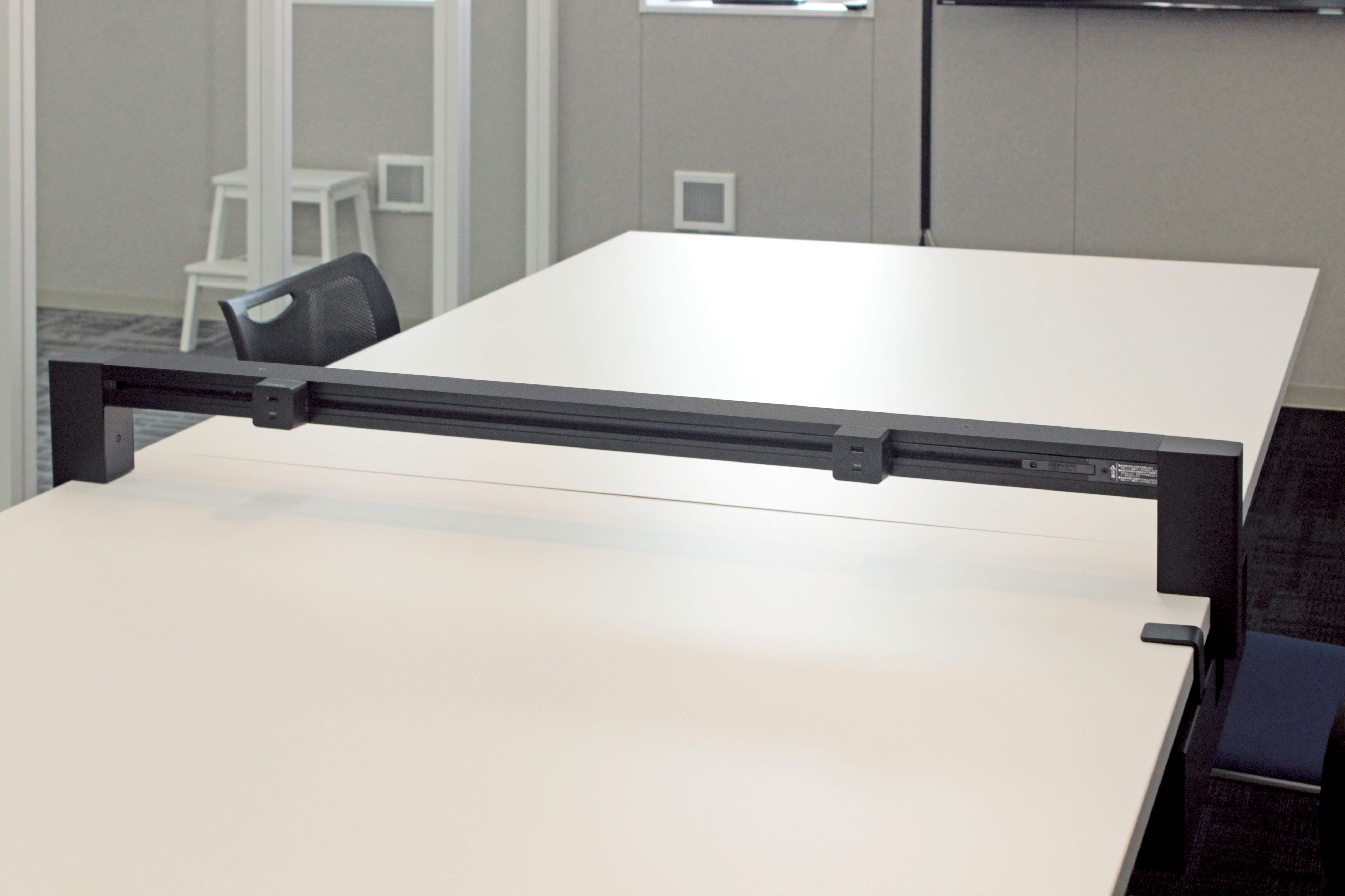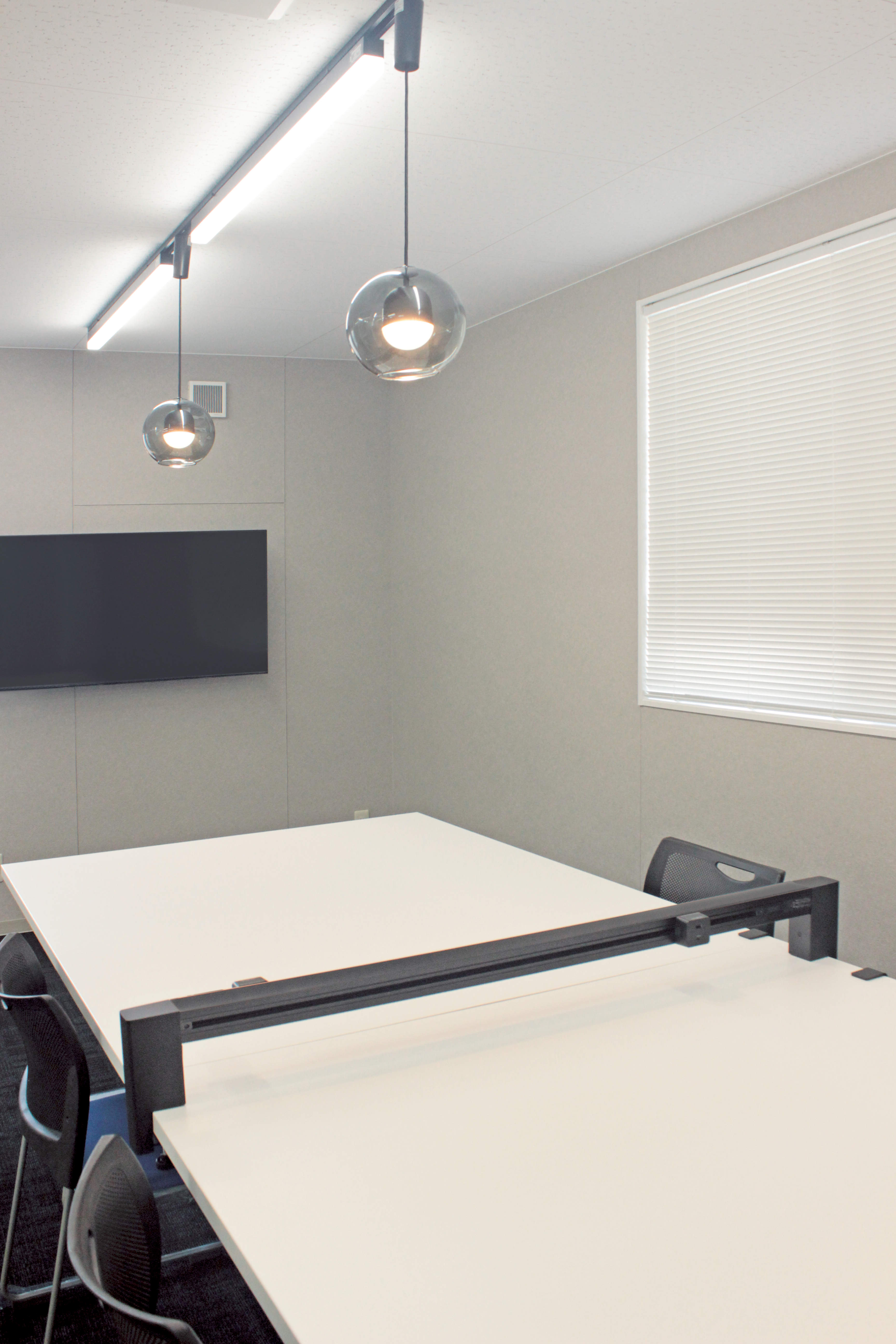 来客用個室の長机、中央部に奥行方向で取り付けいただきました。