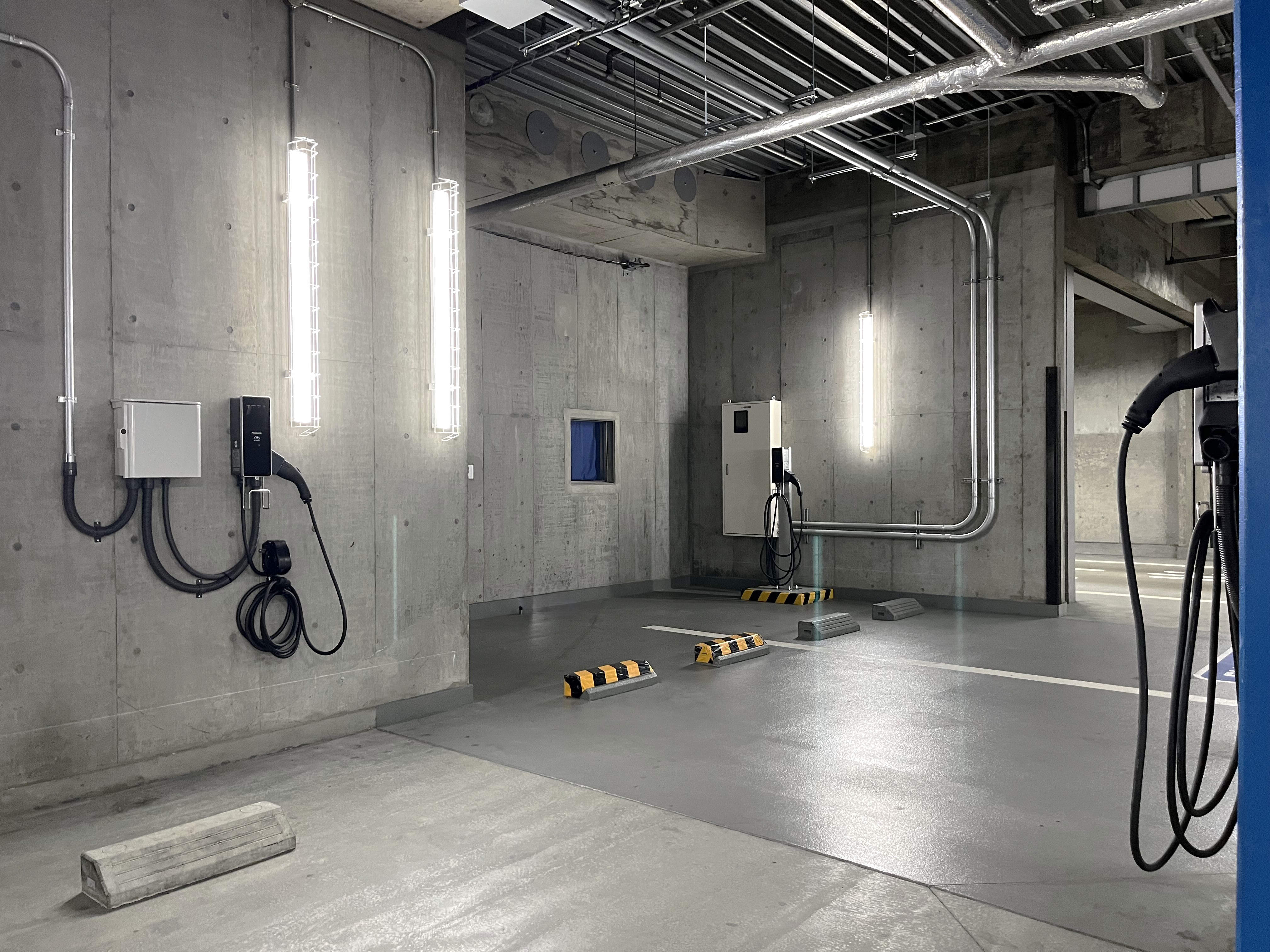 地下3階の駐車場に電気自動車充電設備「ELSEEV」を設置しています。