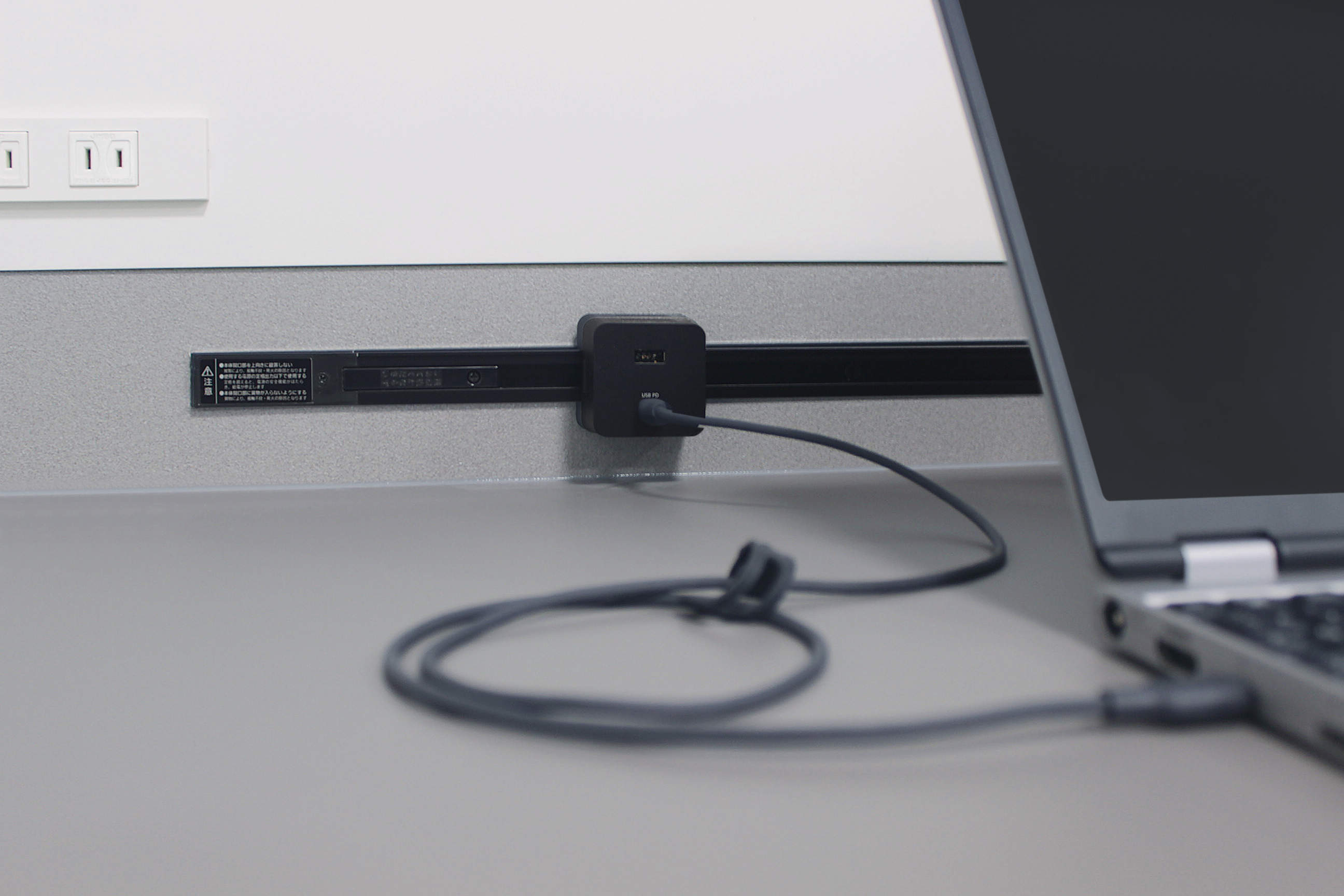 デスクにてノートパソコンや電子機器への壁面からの給電に使用いただきます。