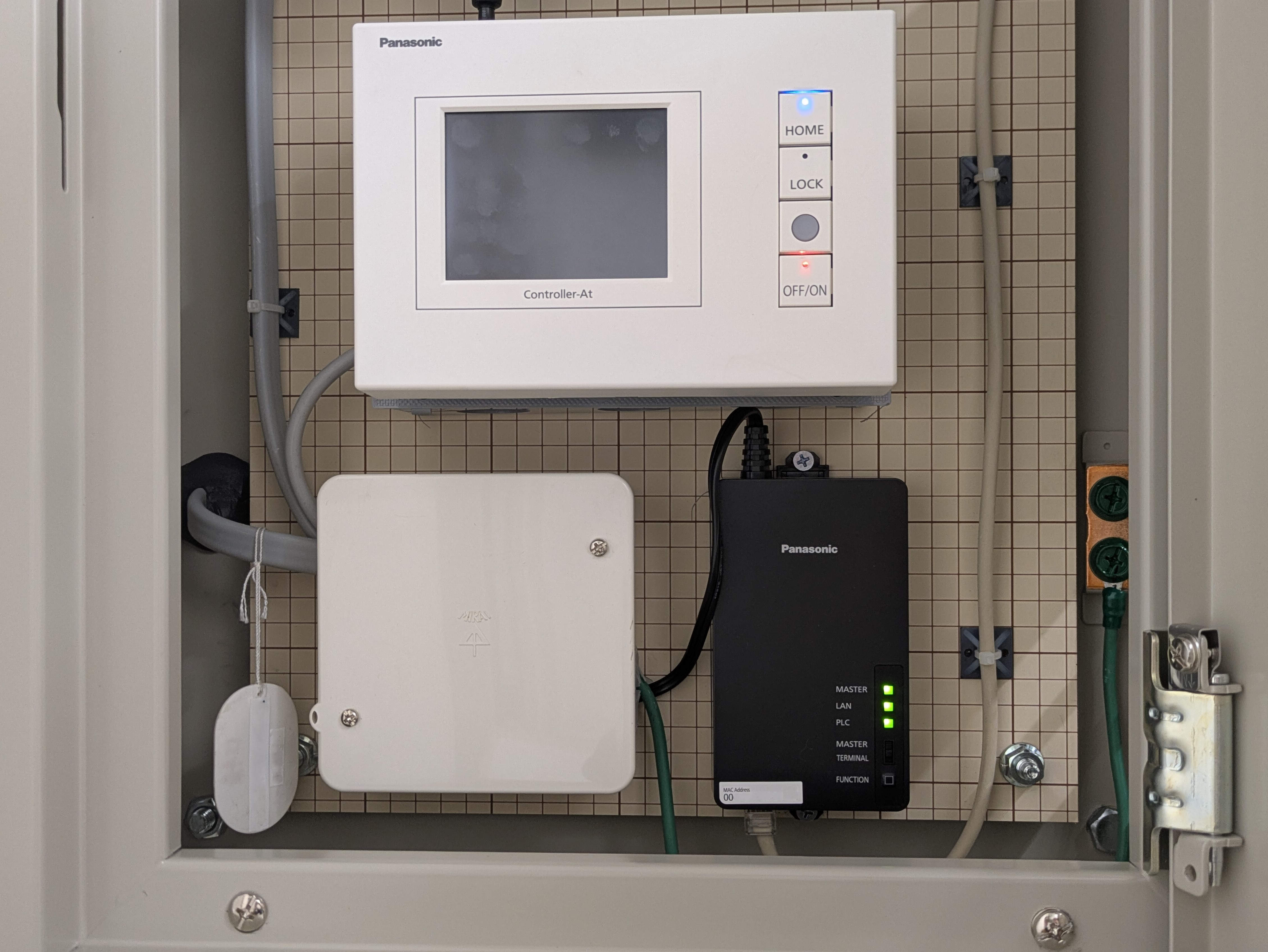 屋外にあるダイナペインター側の制御盤にもPLCアダプターが設置されている。(写真ん中やや右下)