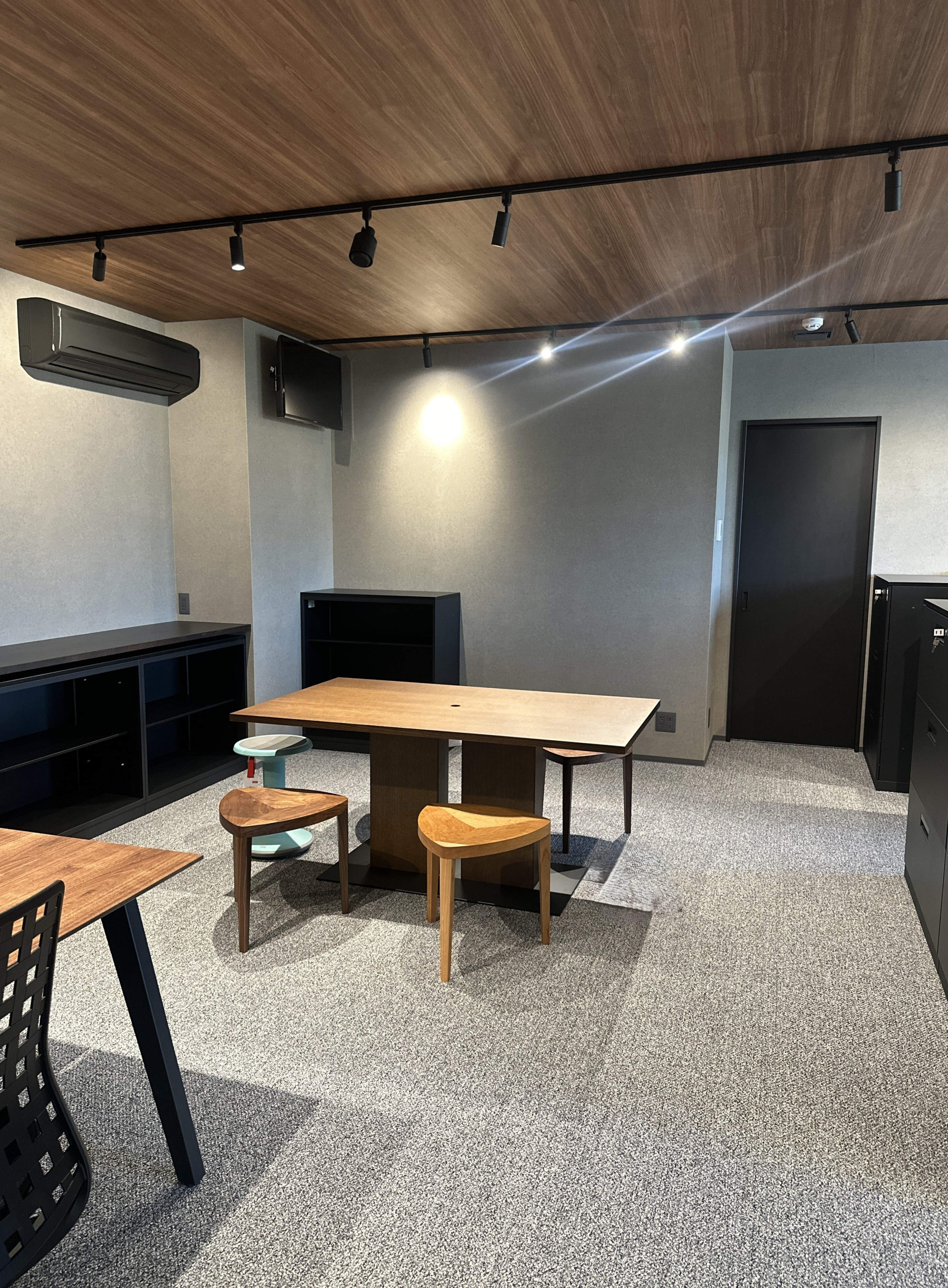 総務エリアは黒のコンパクトランプのスポットライトで構成されています。