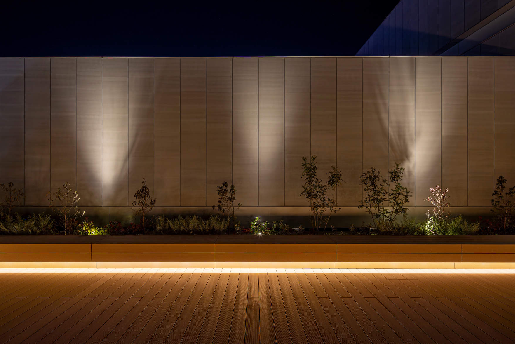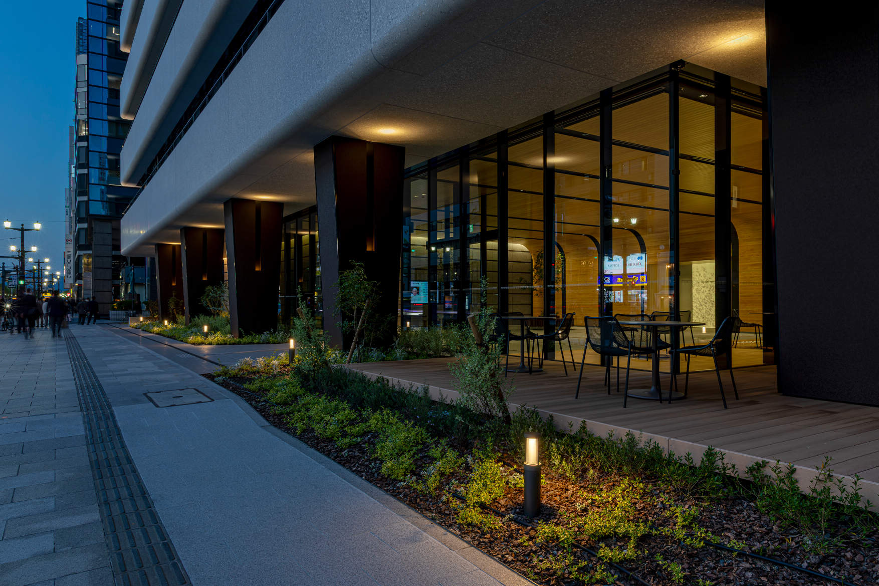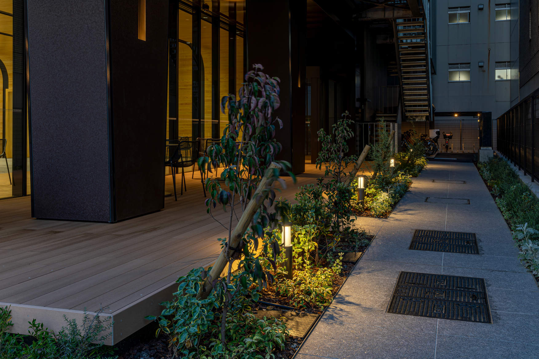 外構にはブロードウォッシャー全周配光タイプを採用。