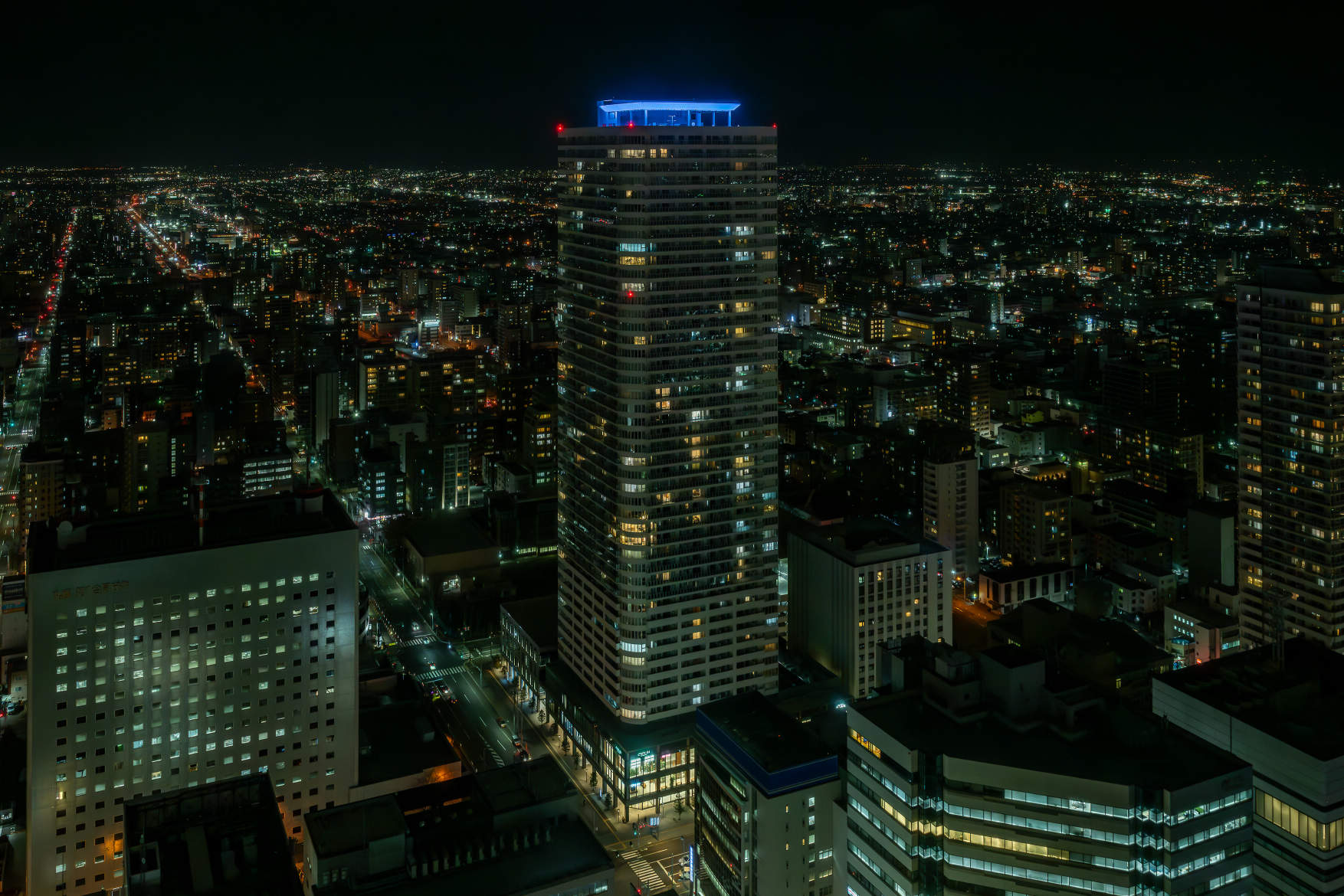 札幌駅北口の新たなランドマークとなるよう、2025年12月より屋上部をフルカラー投光器でライトアップの運用を開始。