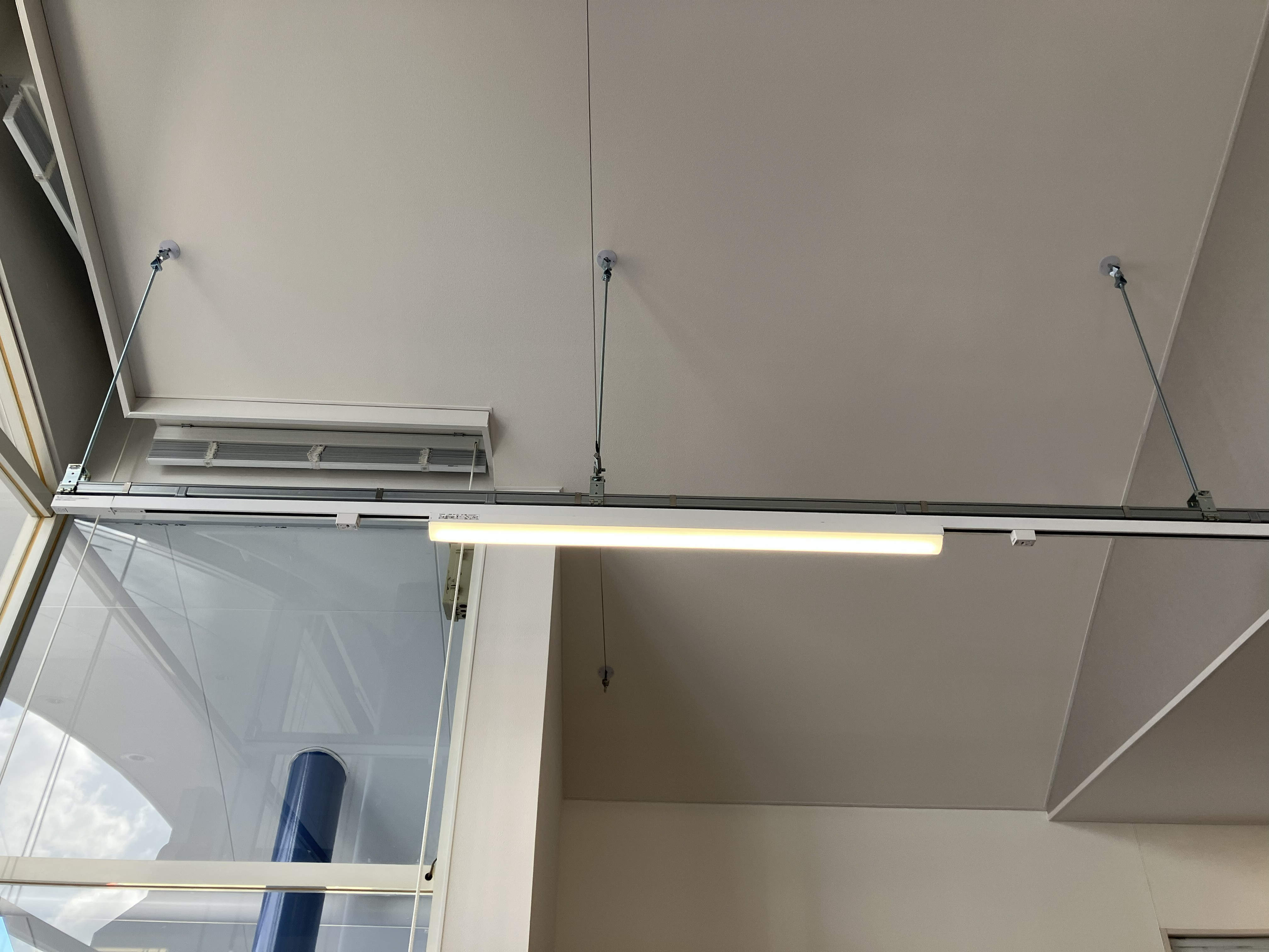 天井から電源を取ることで空間がすっきりとなり、お客様のつまずき・転倒リスクが軽減した点を評価いただきました。 - 採用商品