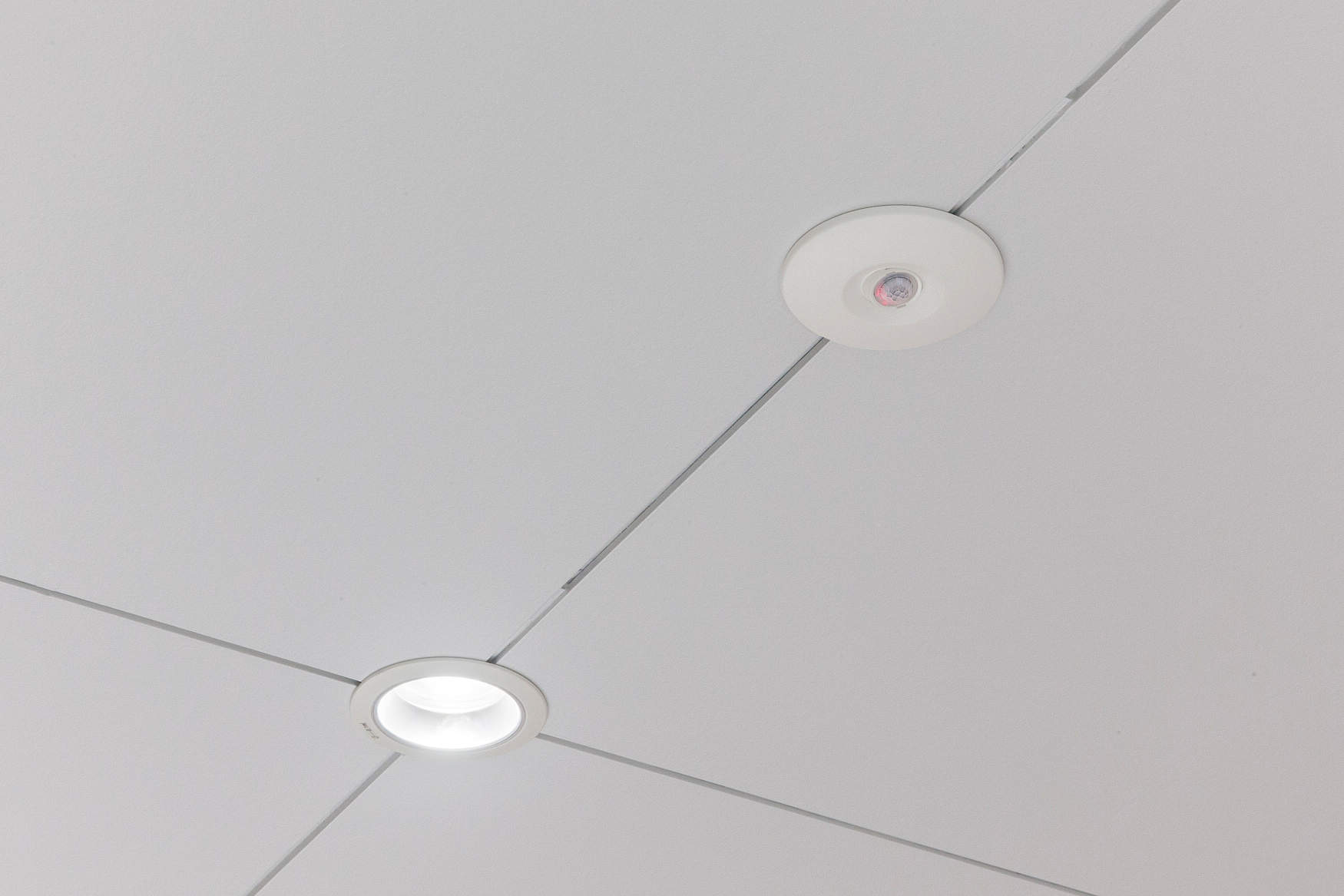 「天井取付熱線センサ付自動スイッチ」は熱線センサの働きで人を感知して必要な時だけ照明を点灯。