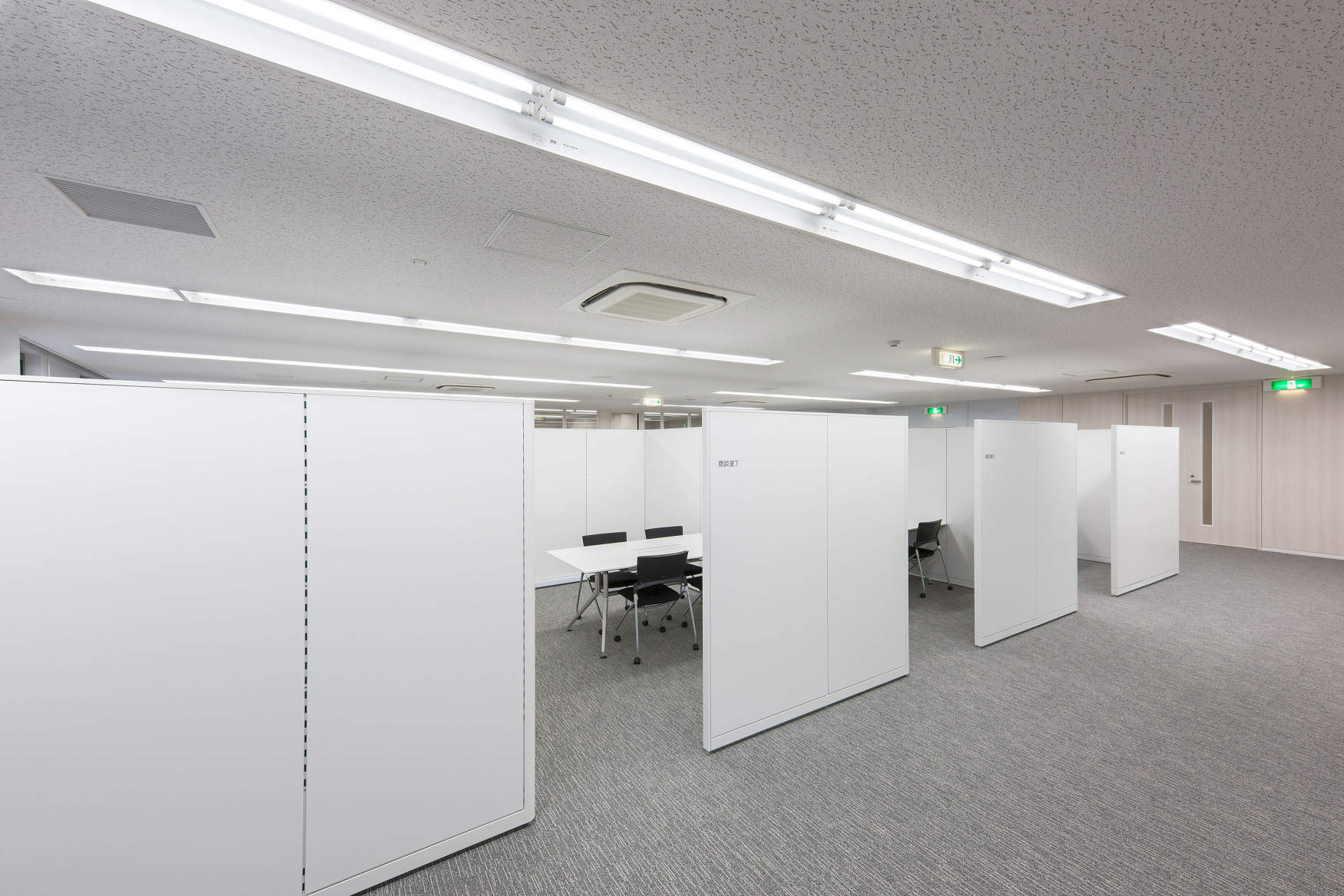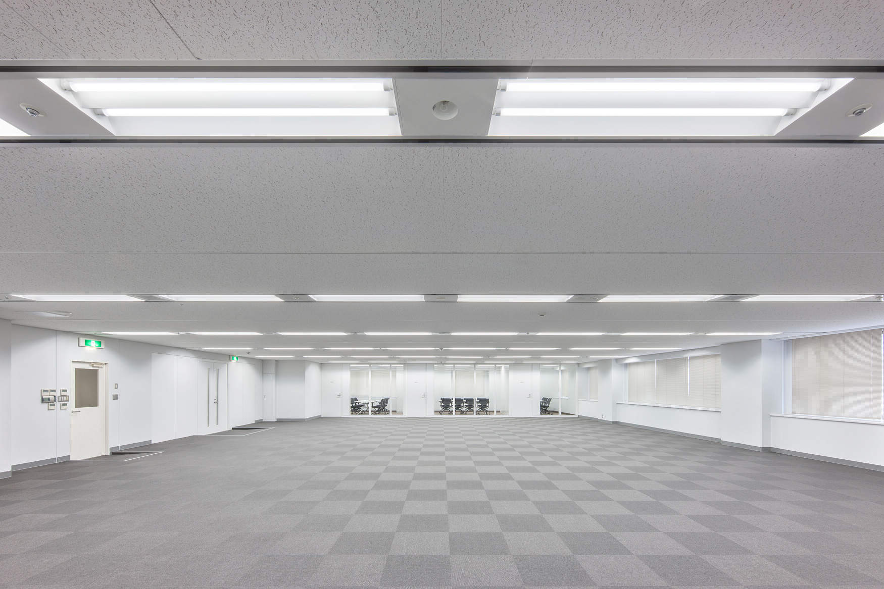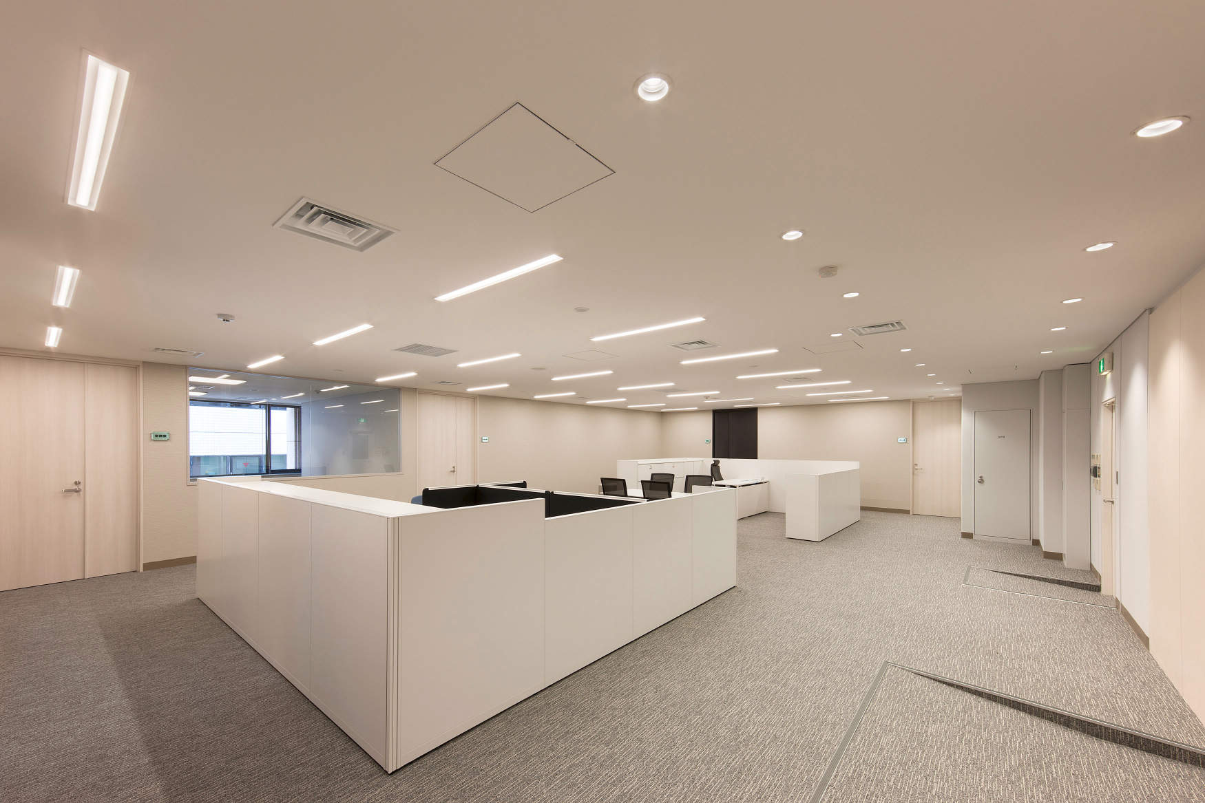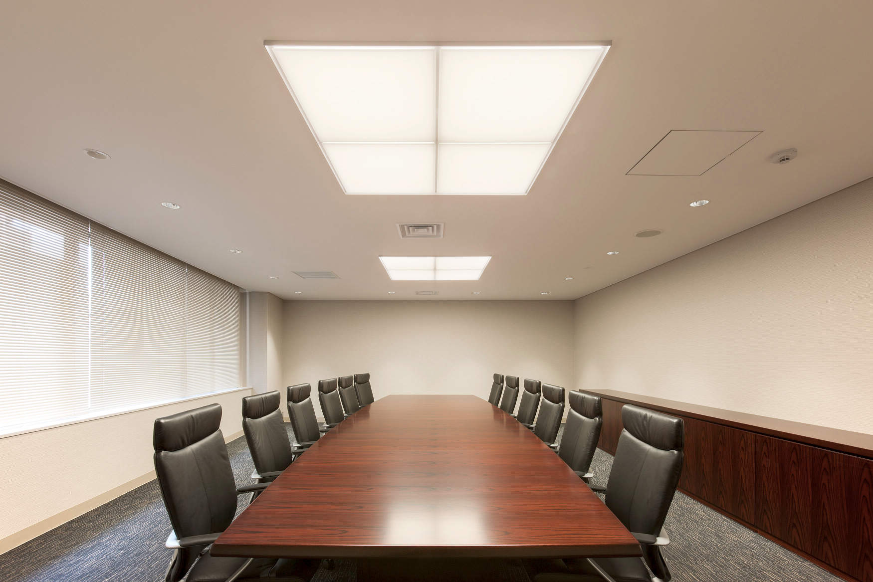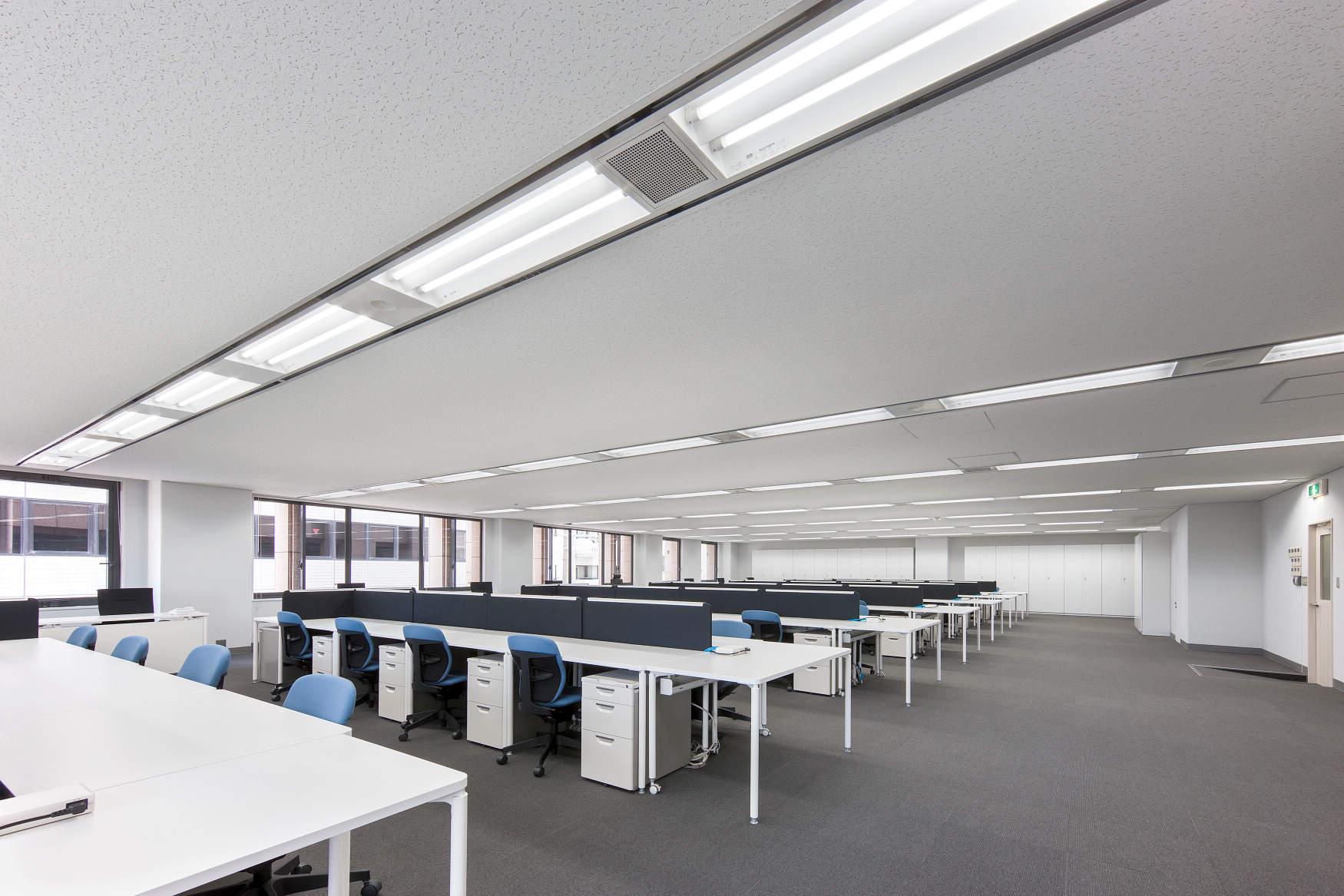 既設のシステム天井ラインをそのまま使用のため、照明器具を現場に合わせて加工。
