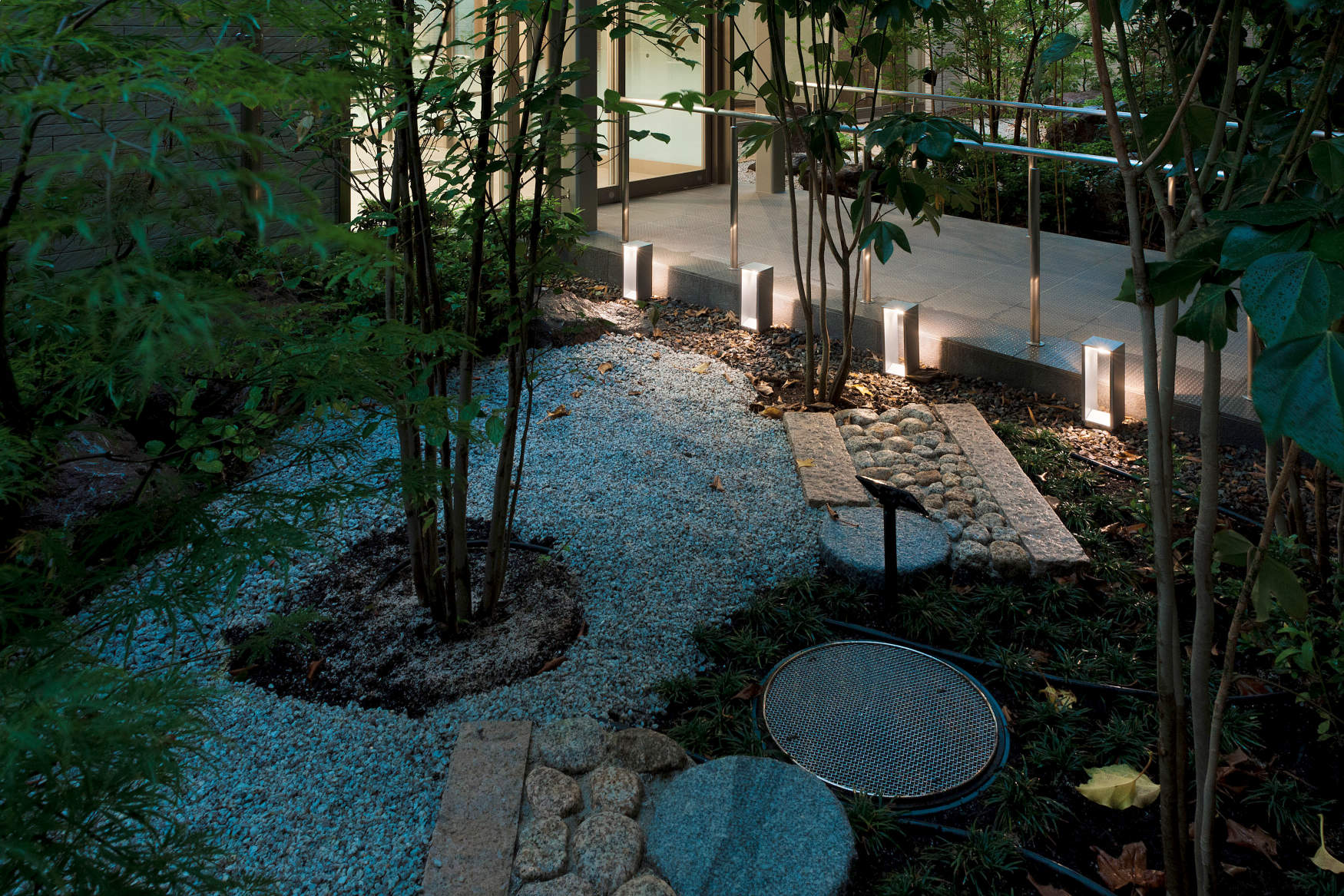 ダウンライトは中央に光だまりをつくり道筋を照らしています。