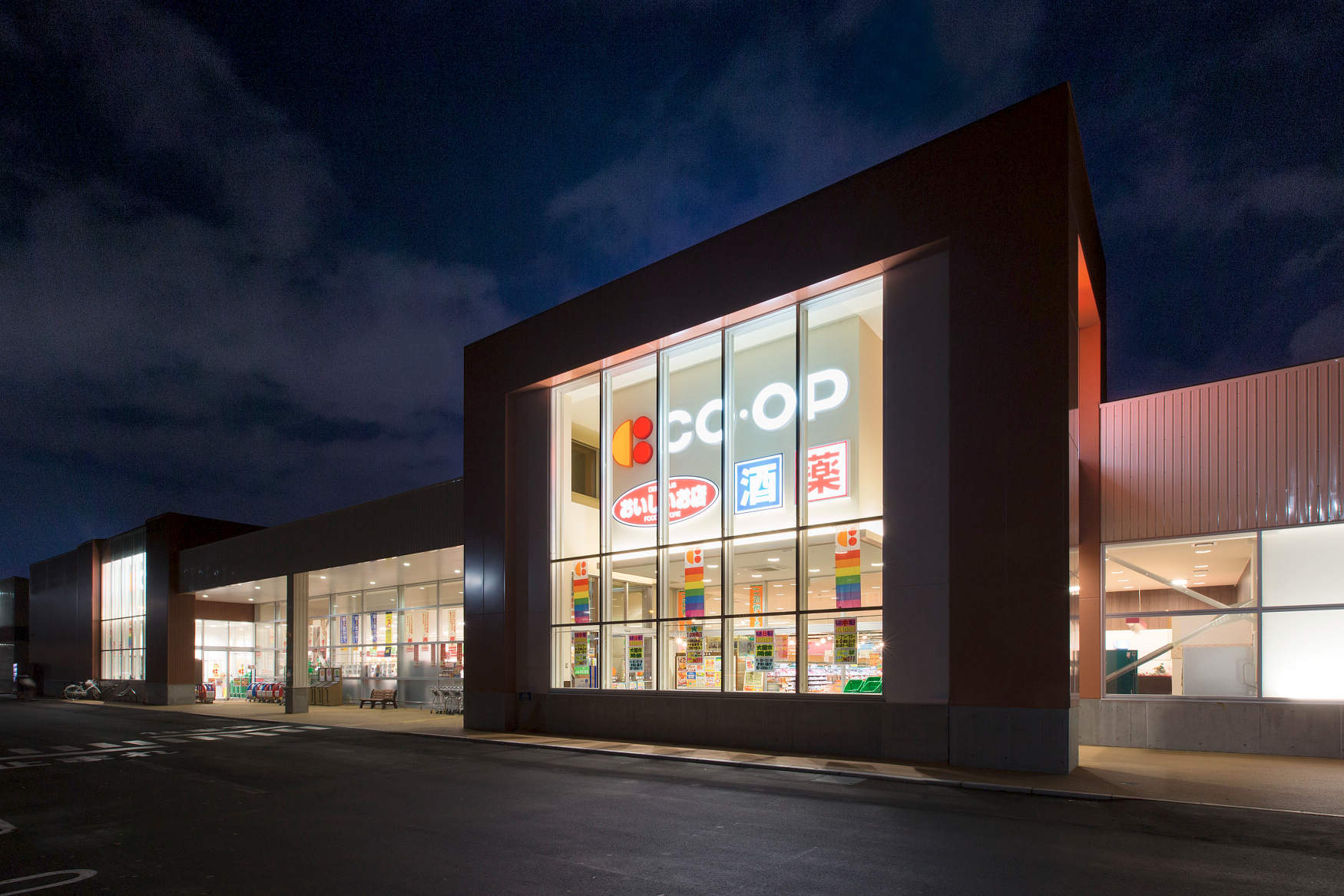 コープさっぽろ月寒ひがし店は、売場内の柱を無くした特長的な建築設計の店舗です。