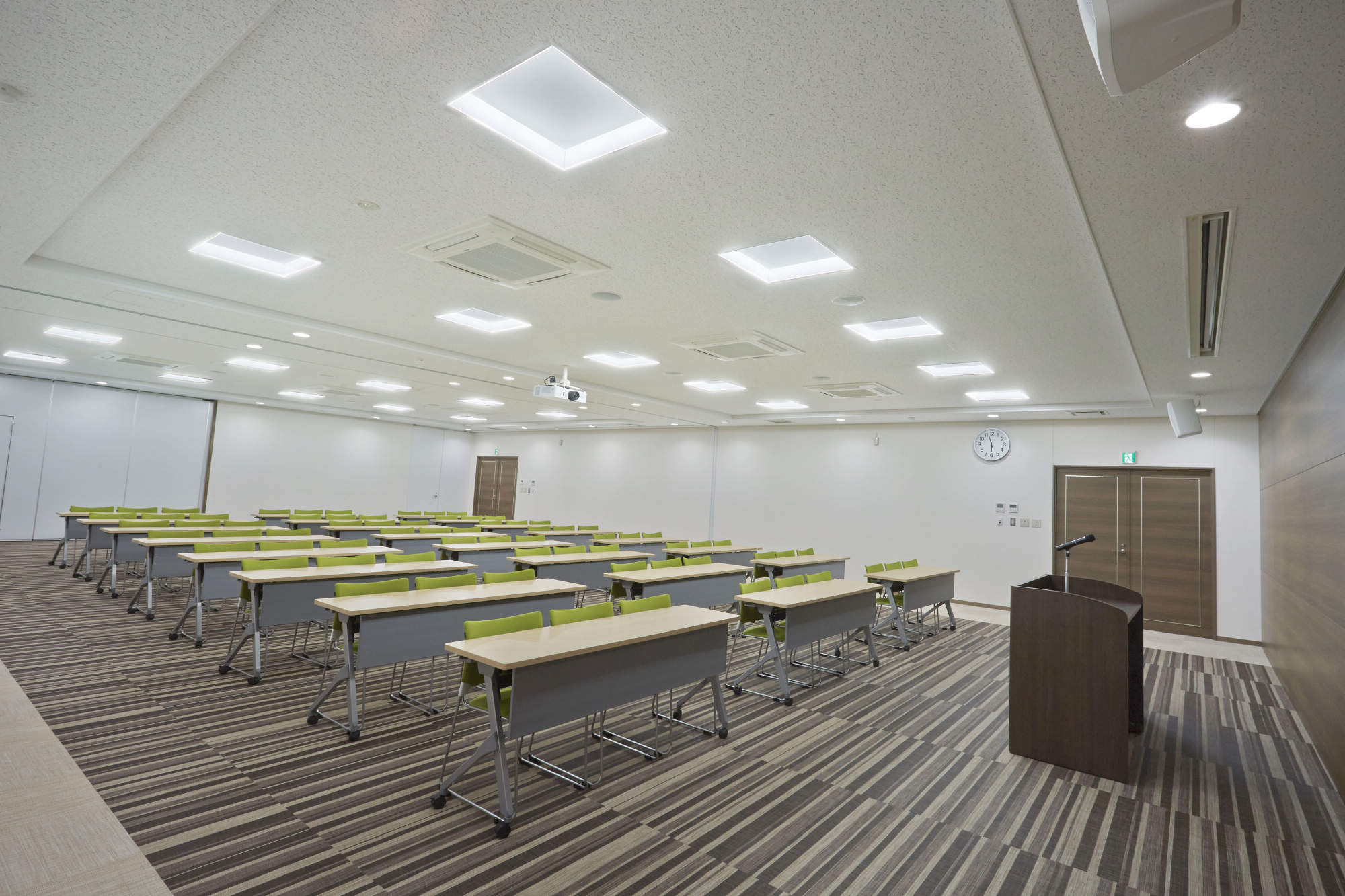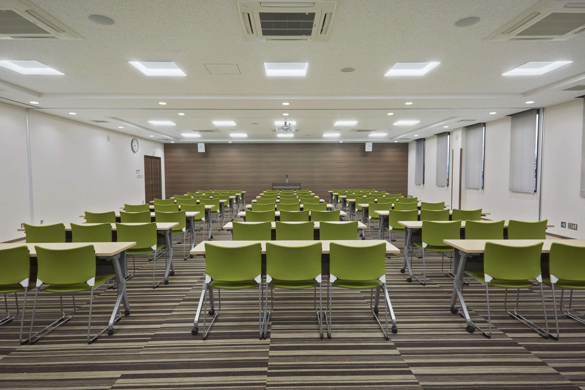 - 里山辺支所と入山辺支所を統合した山辺支所の新築計画。建物の外観や内装は、山辺地区の特産物であるぶどうやワインのイメージを取り入れています。1階に金融共済・営農生活の事務所店舗とあぐり資材センター山辺を併設、2階には120人収容の会議室と料理教室等に利用できる設備を備え、支所機能を一つの建物に集約することで、組合員、利用者の利便性を図っています。