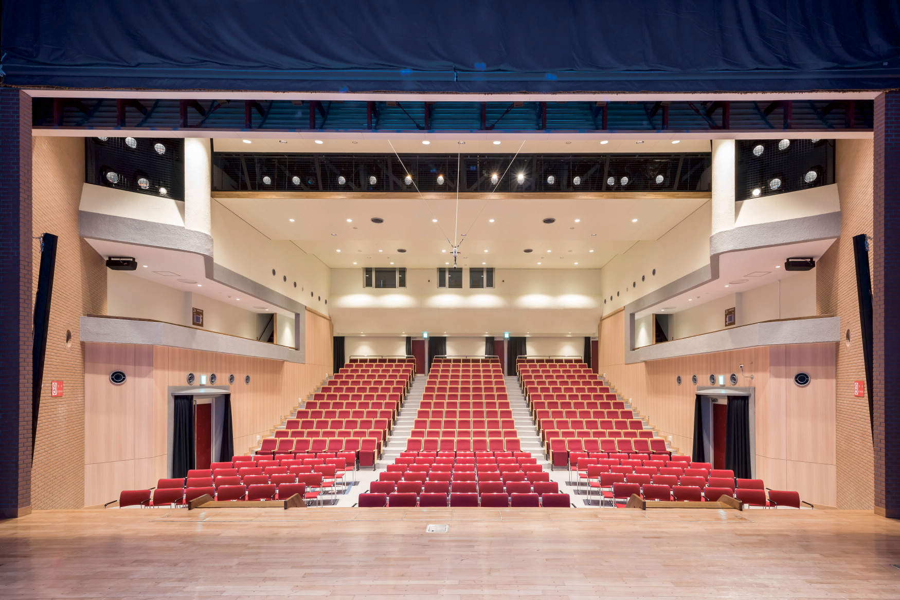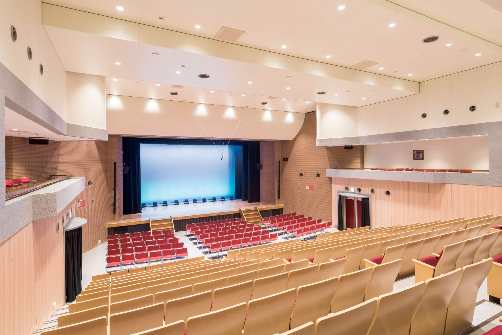 中央公民館とホール、図書館が併設された複合施設となっており、ホールは約400名収容できます。