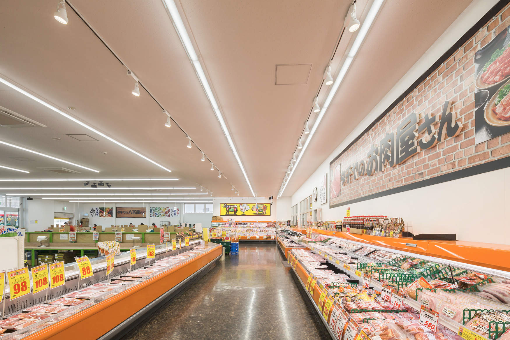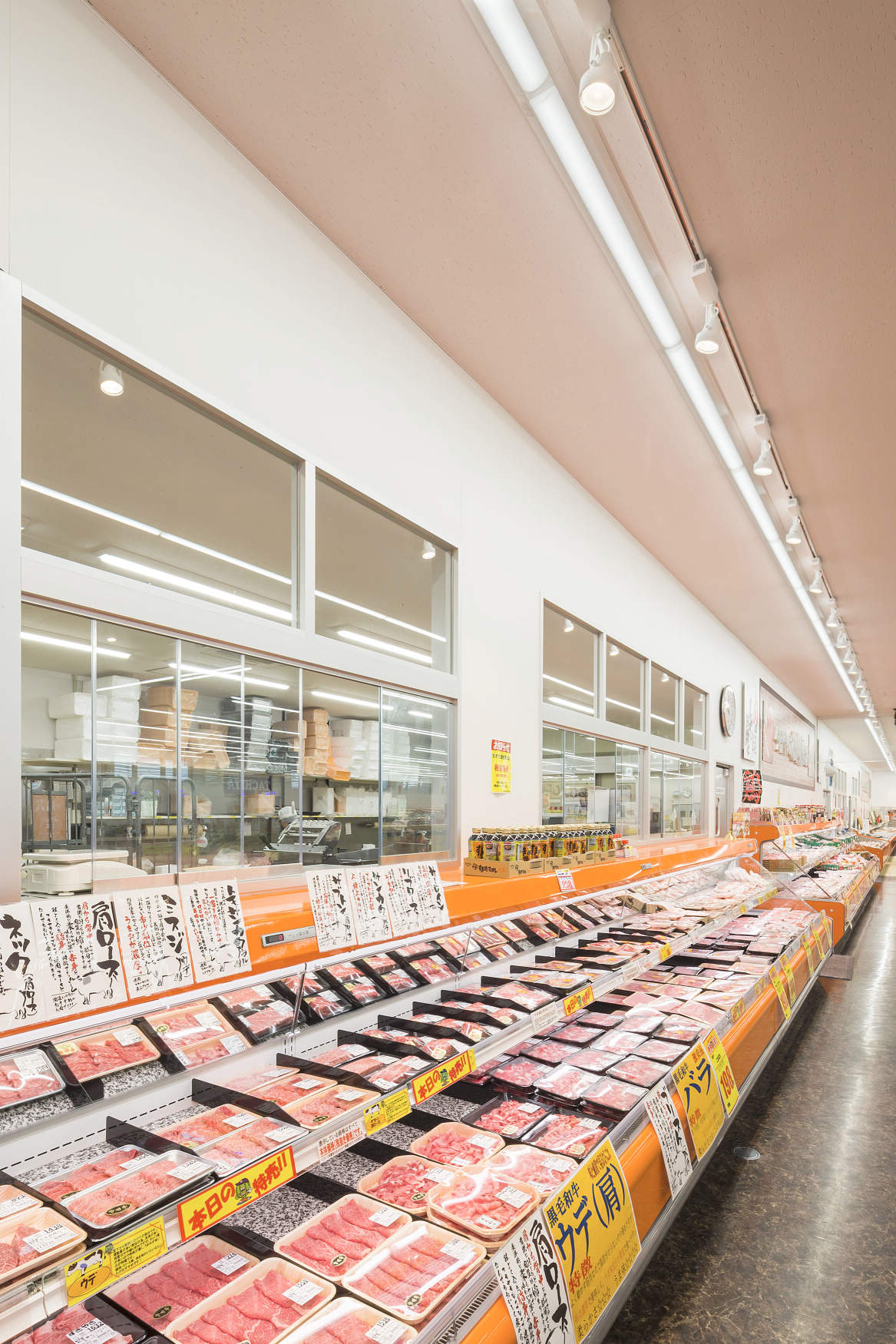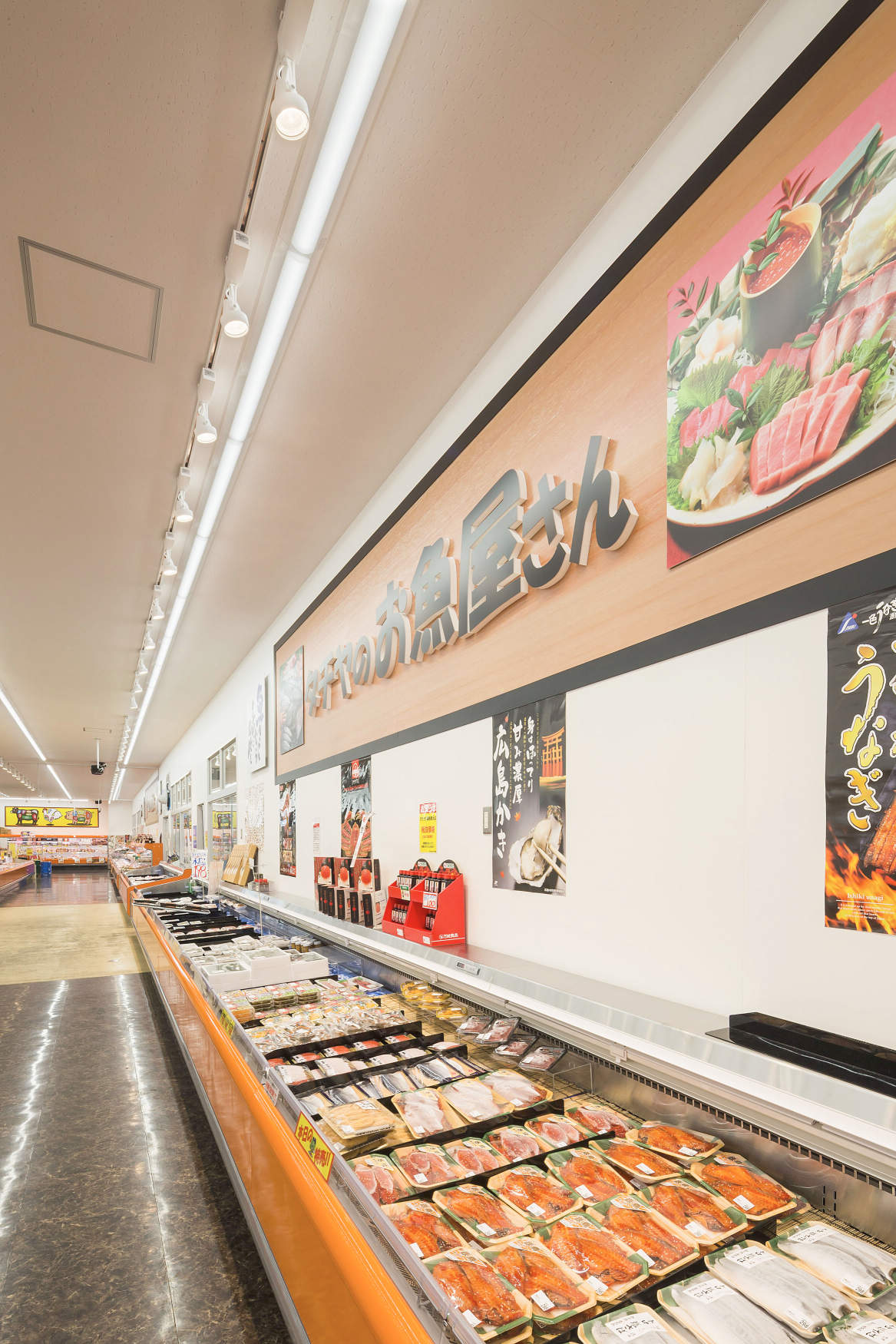 鮮魚・精肉・お惣菜を彩光色にて演出しています。