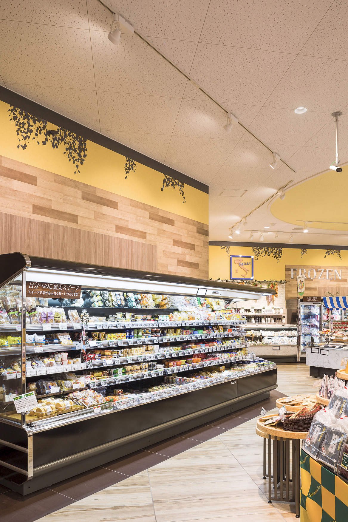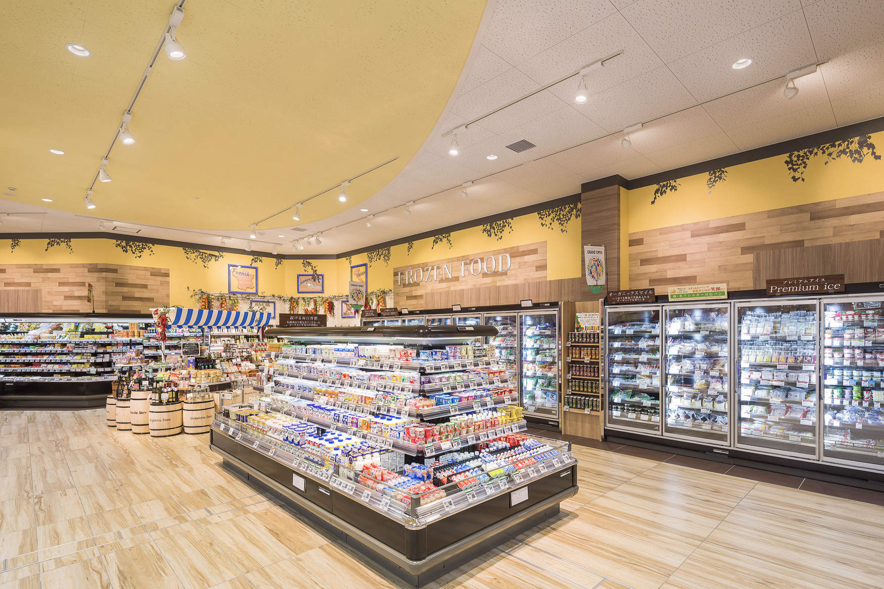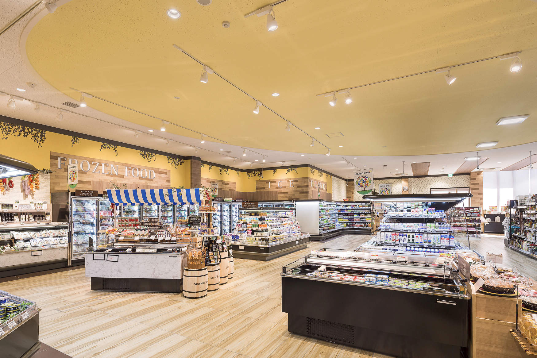 グロッサリーのベース照明は「スクエアシリーズ」をご採用いただいています。