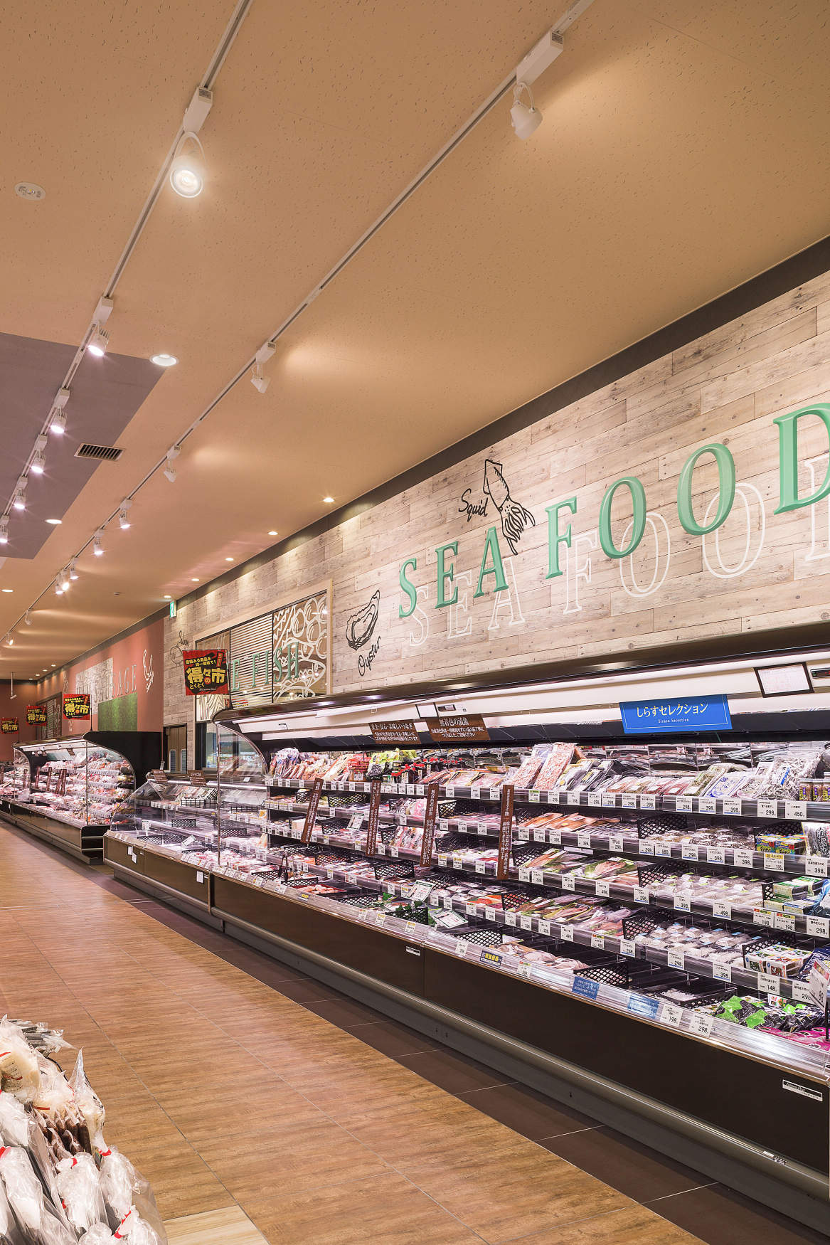 - 省エネの取り組みの一環としてLED照明器具の導入をすすめているしずてつストアでは、生鮮食品の持つ色味を鮮やかに表現、新鮮さを演出する「彩光色」スポットライトを従来からご採用いただいていました。