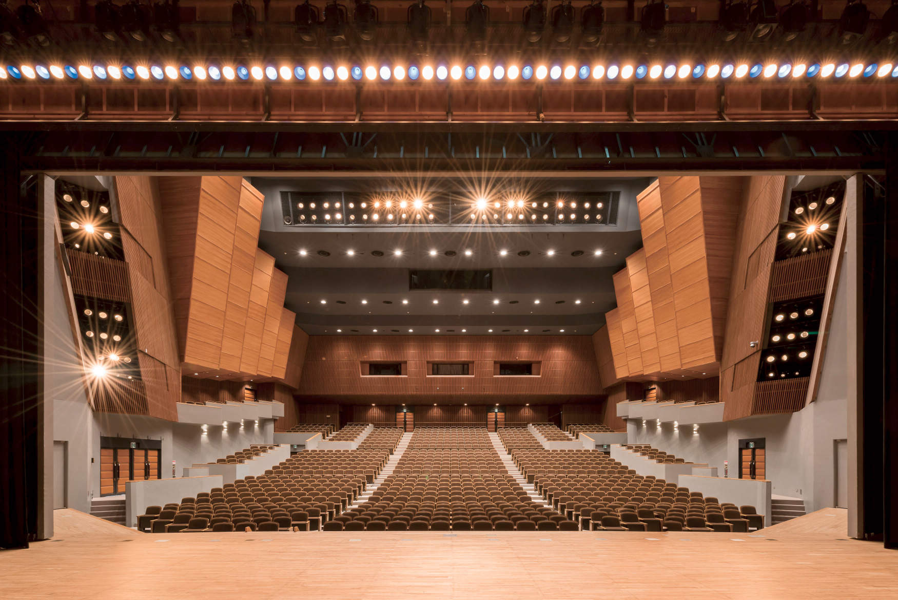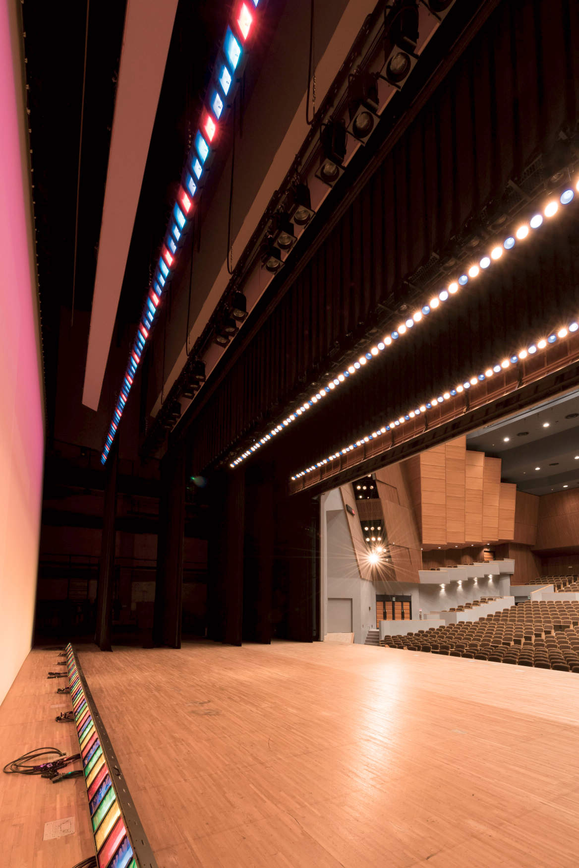 舞台照明器具一式更新、スポット類は全て従来光源ハロゲンで更新しています。演出性が小さい天井反射板ライトについては経済性も考慮してLED化しています。採用経緯は既設当社納入件名であり、パナソニックESエンジニアリングは日頃よりメンテナンス対応などで信頼を得ていました。改修にあたりお客様の要望をヒアリングし反映させることで採用に至りました。