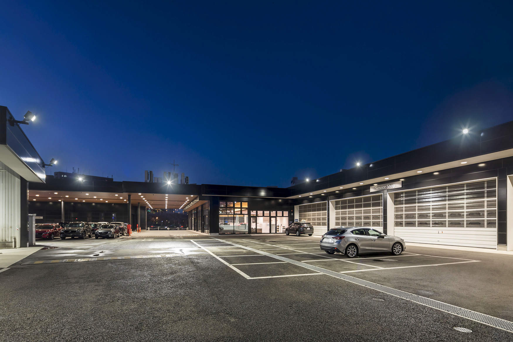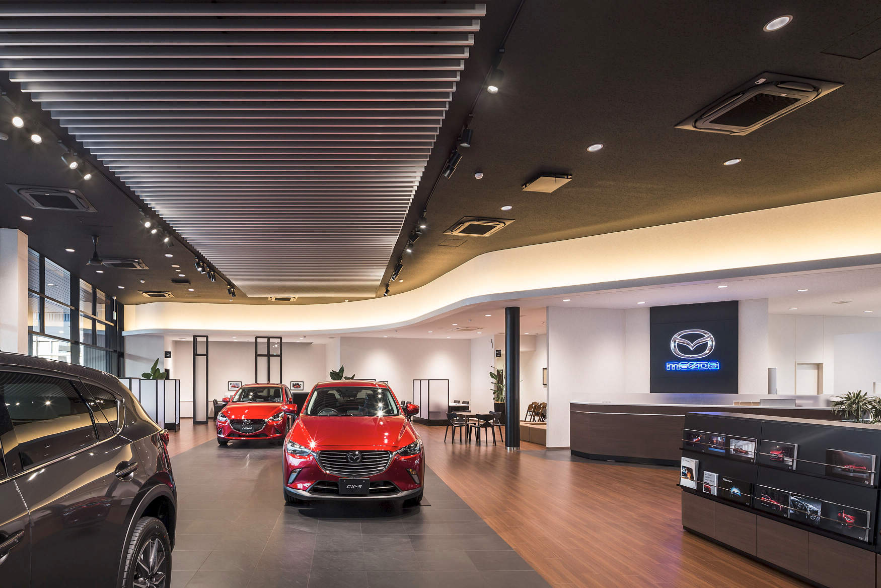 - 本施設は、小倉北区を中心に広いエリアをカバーする基幹店舗としての機能をもつ最重要なマツダブランドの発信店舗です。自動車ショールーム部分に光の色をコントロールする「調色機能」と明るさを調節できる「調光機能」を併せもつLED照明設備を採用。時間経過により設定された色温度の変化で、朝、昼、夜の業務内容や雰囲気に合わせ、ご来場されたお客様が快適で過ごせる心地のよい空間、明るさを実現し、基幹店としてとしての高品質な光環境を実現してます。