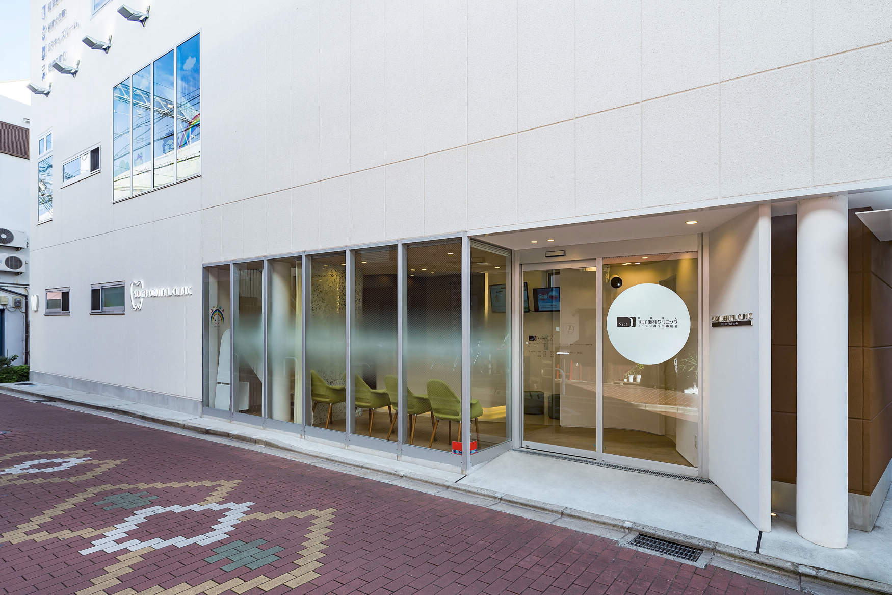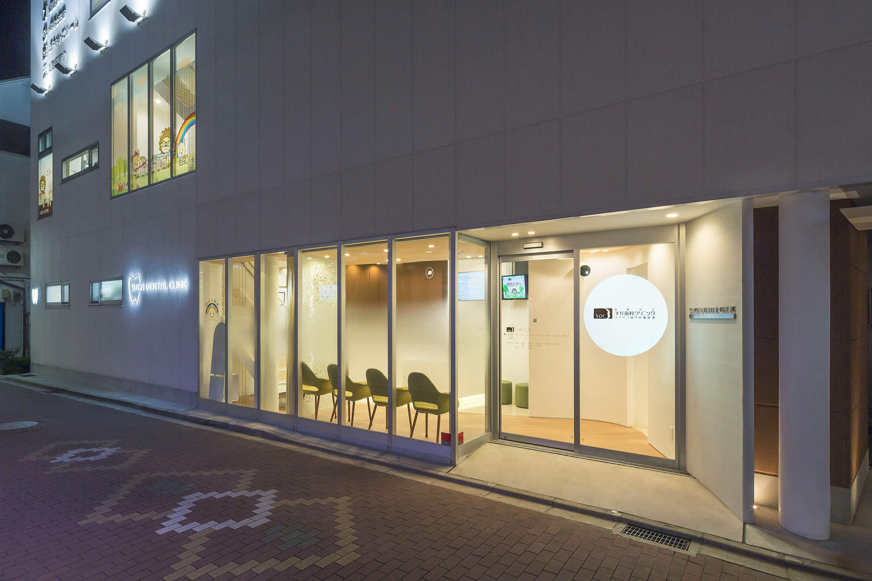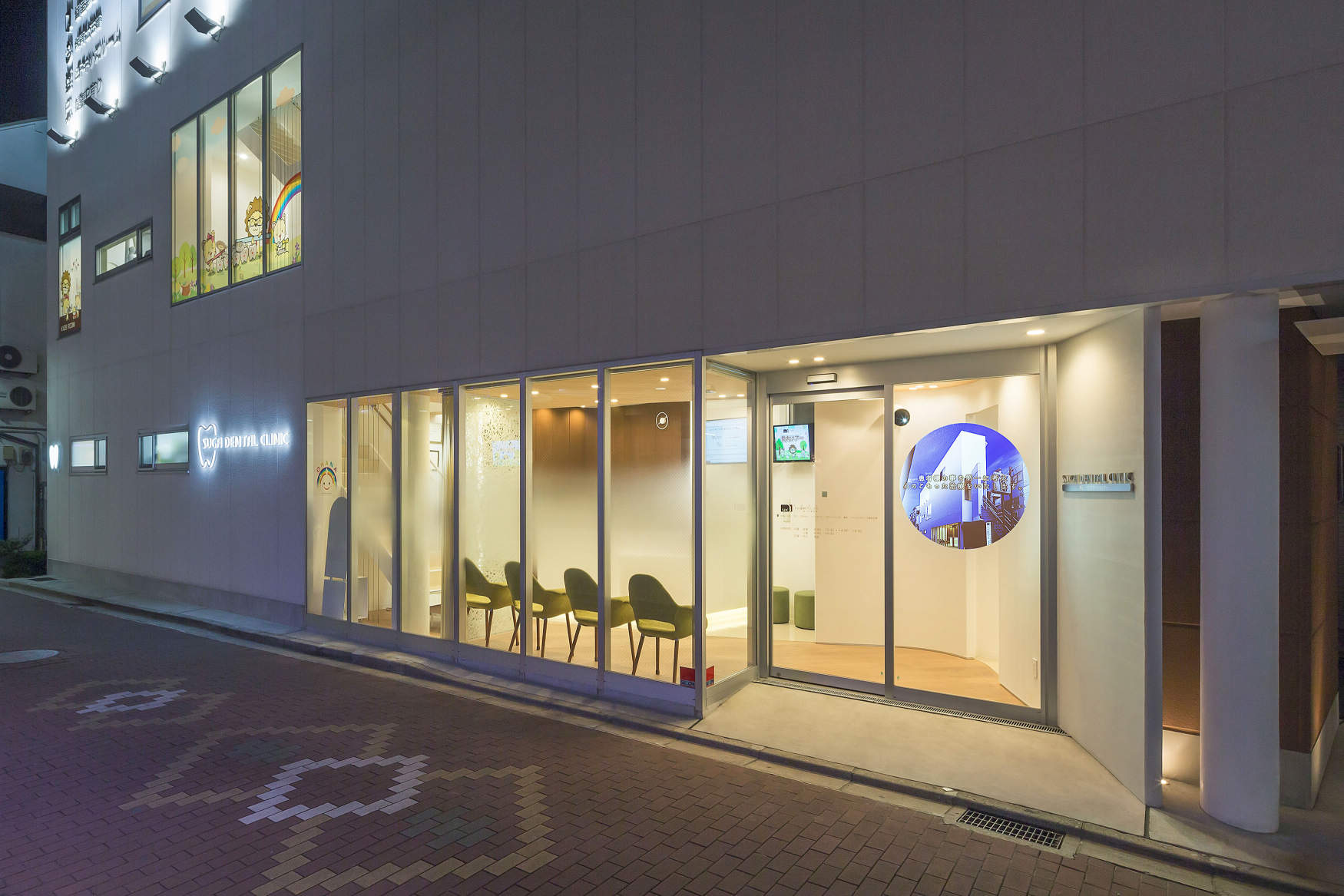 - 大きなガラス窓が印象的です。子どもの治療にも力を入れている歯科クリニック。
