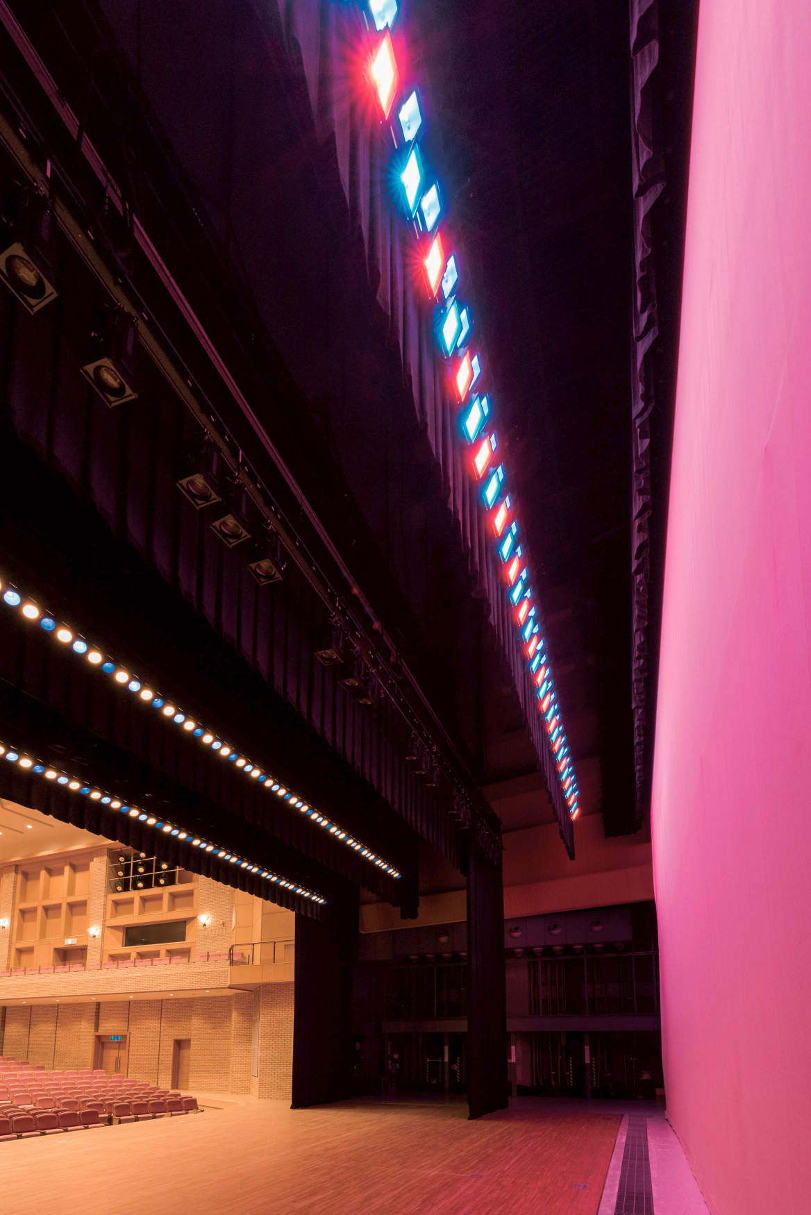 収容人数は1541席、舞台は間口17.1m、奥行11m、高さ11m、今回リニューアルにともない記憶調光操作卓パレータスγ、調光制御盤を採用いただきました。