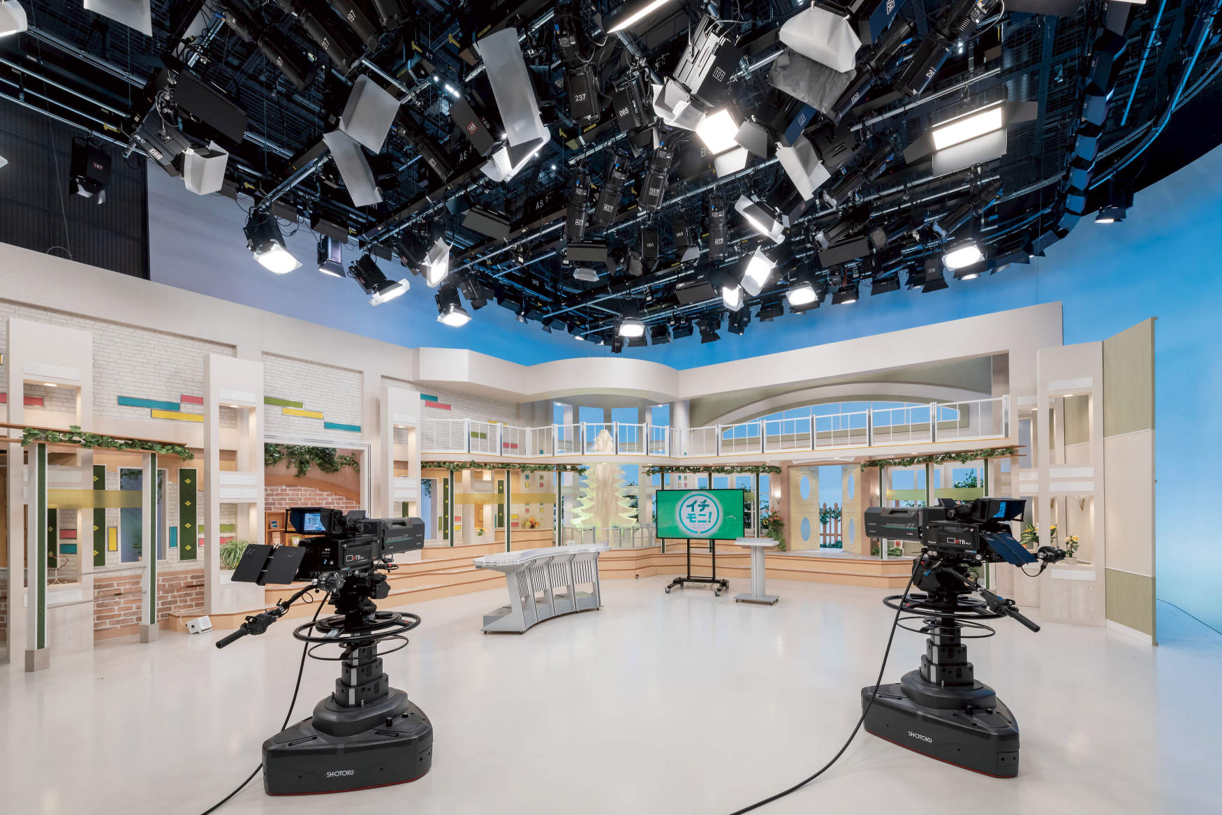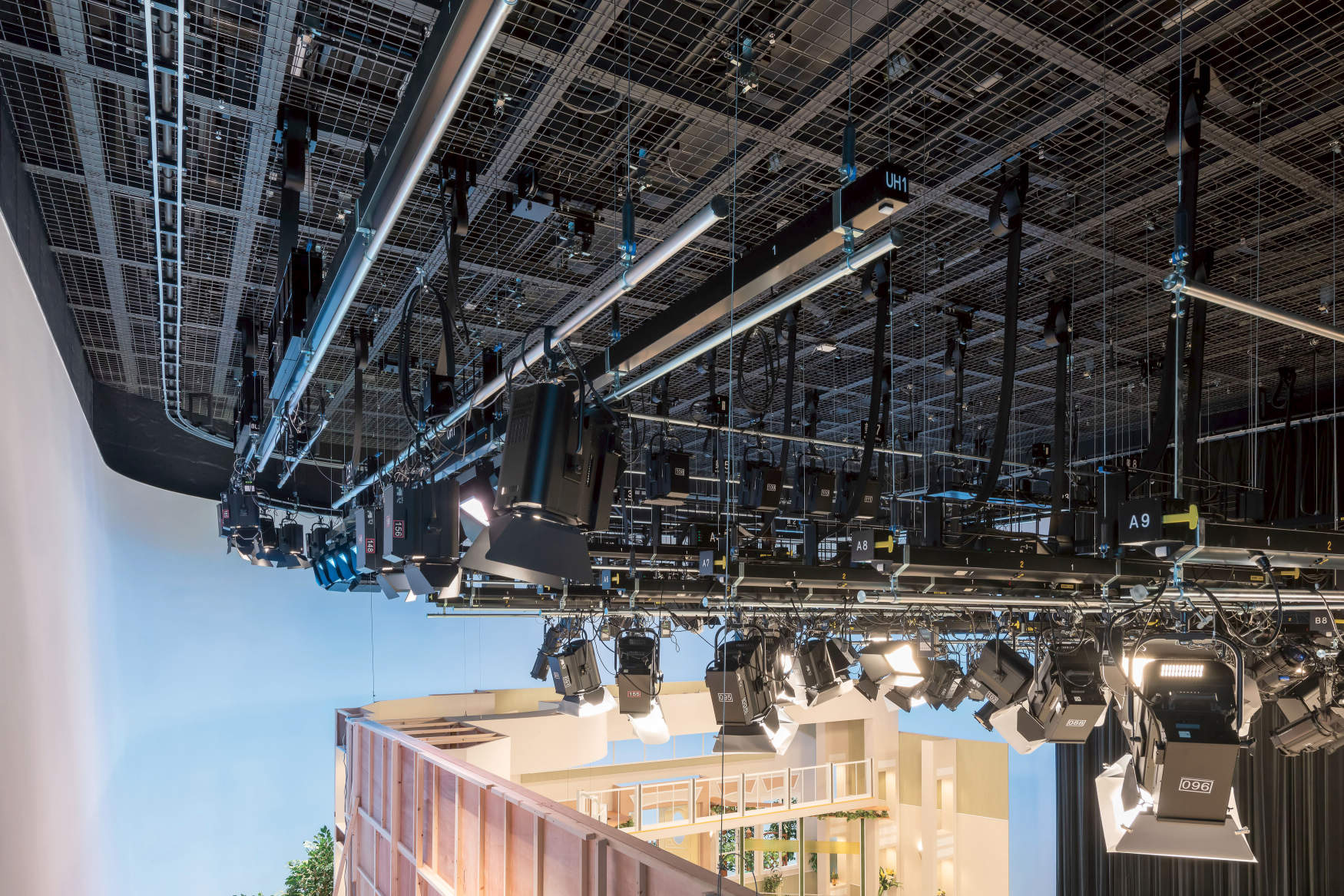- 新社屋で第1スタジオ、第2スタジオ、第3スタジオに当社照明設備を納入したオールLEDスタジオです。(納入設備:調光操作卓、LED制御盤、LED器具、昇降設備)