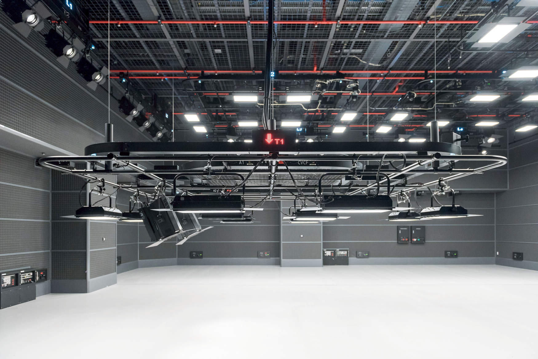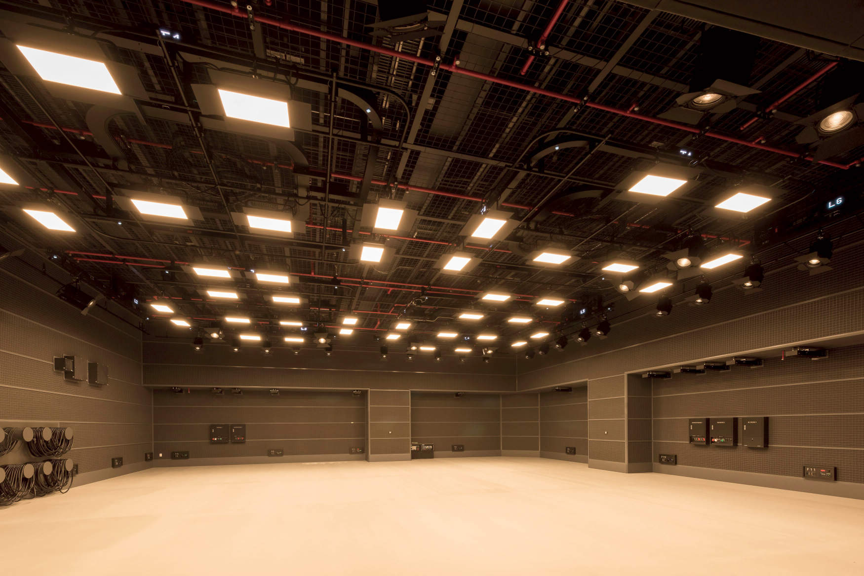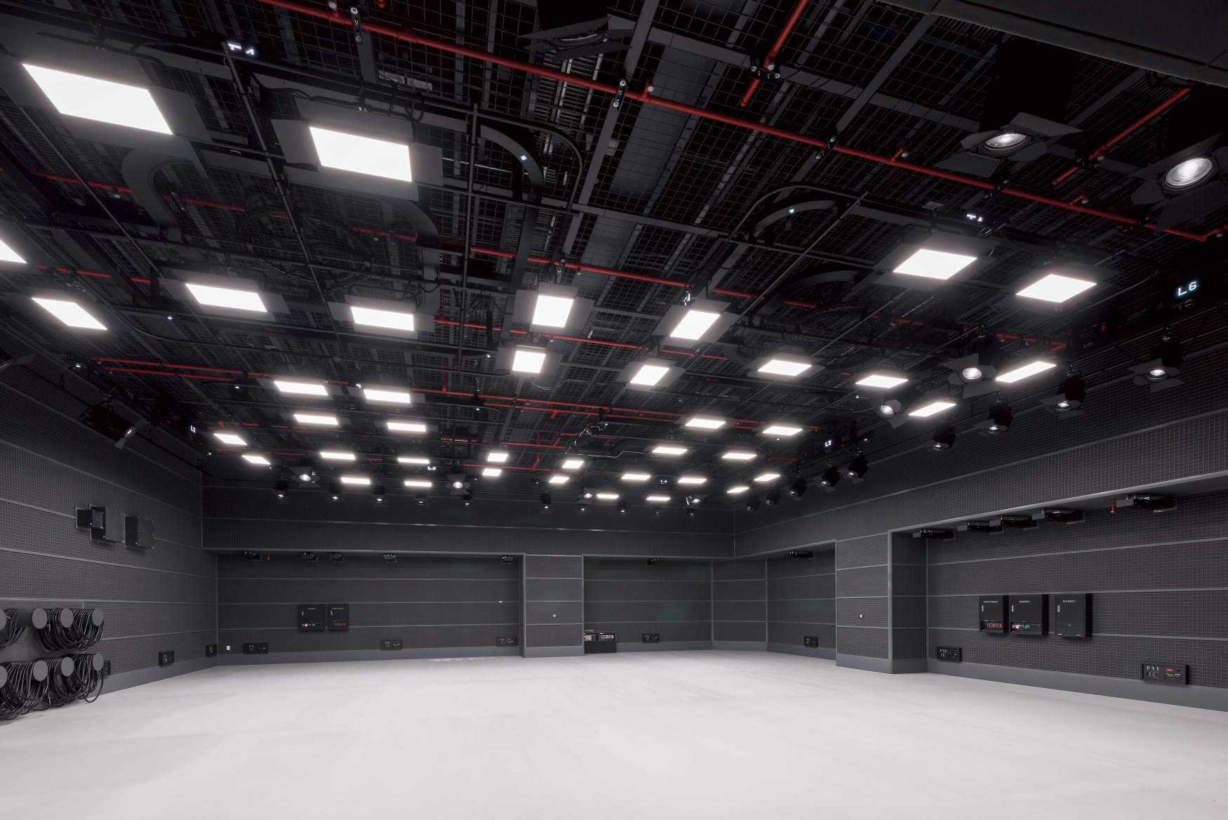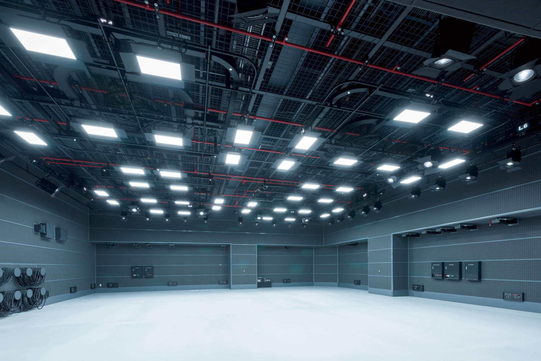その結果、省電力やCO2排出量の削減につながるクリーンなスタジオを実現し消費電力をこれまでのはハロゲンスタジオに比べて実測値で1/10程度に抑えることが可能となりました。既成概念にとらわれない最新鋭のテクノロジーによって、コンテンツ制作はもちろん、地球・環境に優しい次世代型のスタジオ照明設備が完成しました。