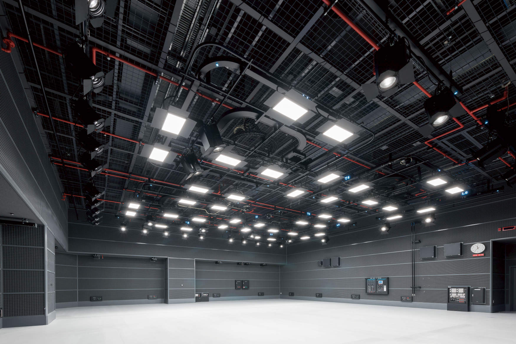 その結果、省電力やCO2排出量の削減につながるクリーンなスタジオを実現し消費電力をこれまでのはハロゲンスタジオに比べて実測値で1/10程度に抑えることが可能となりました。既成概念にとらわれない最新鋭のテクノロジーによって、コンテンツ制作はもちろん、地球・環境に優しい次世代型のスタジオ照明設備が完成しました。 - 採用商品